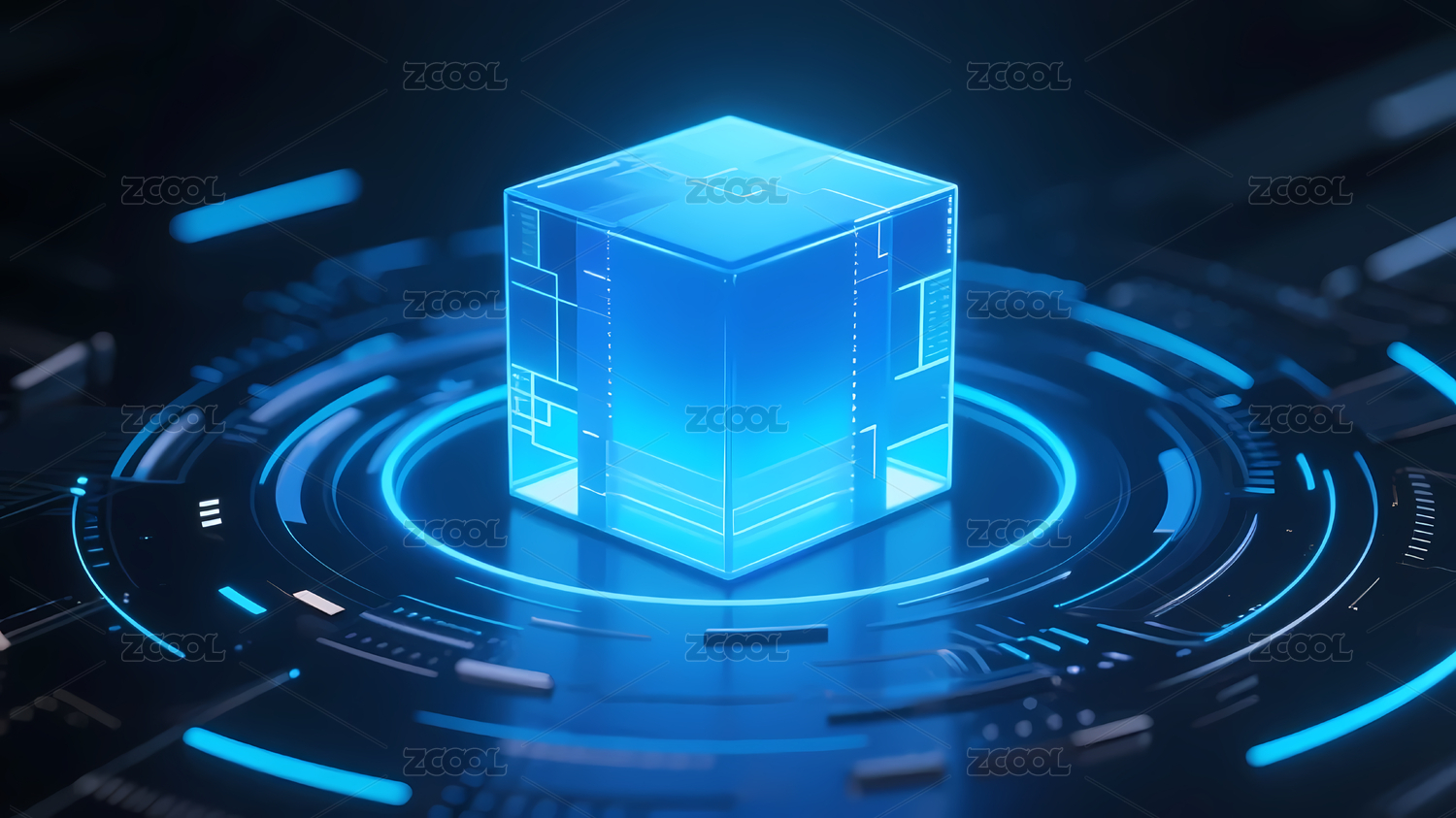 蓝色立方体与科技电路