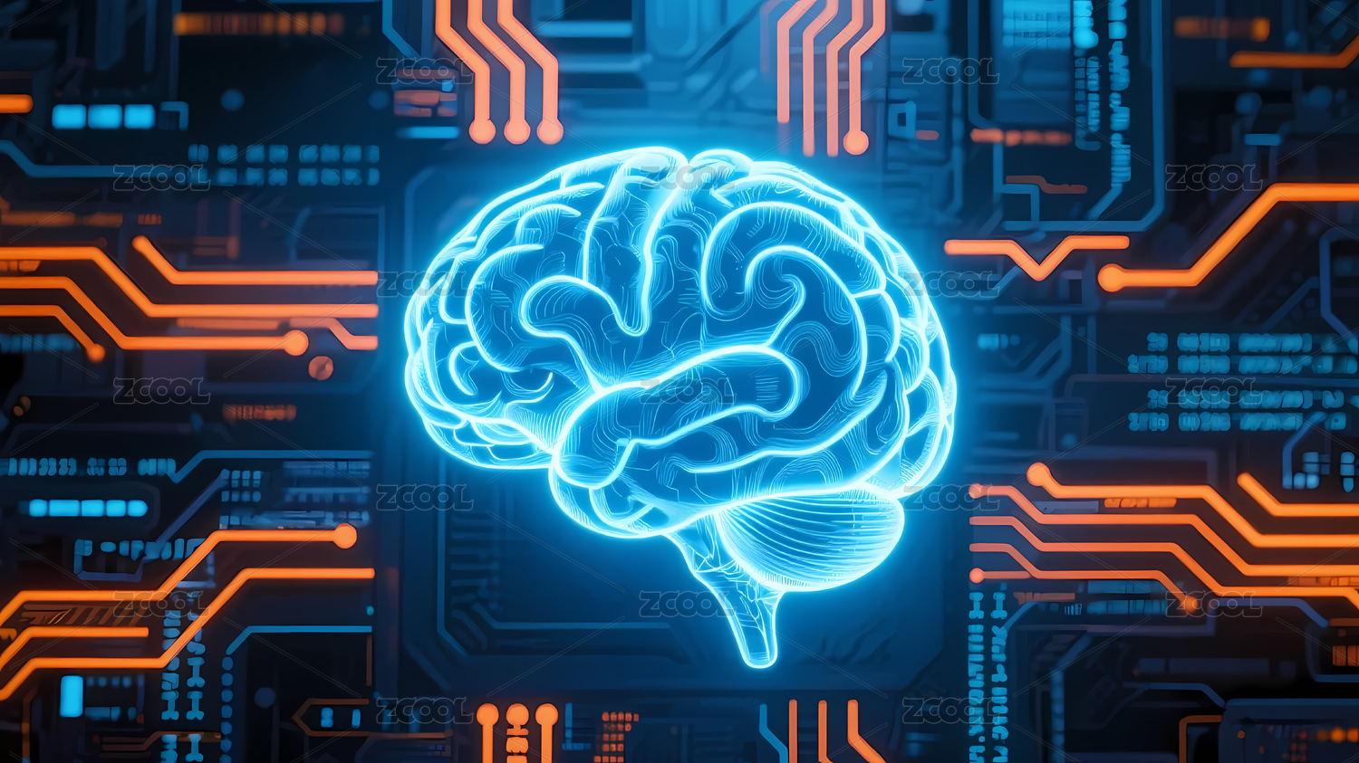 背景,蓝色,科技,主体,橙色,发光,电路板,结构,脑,复杂