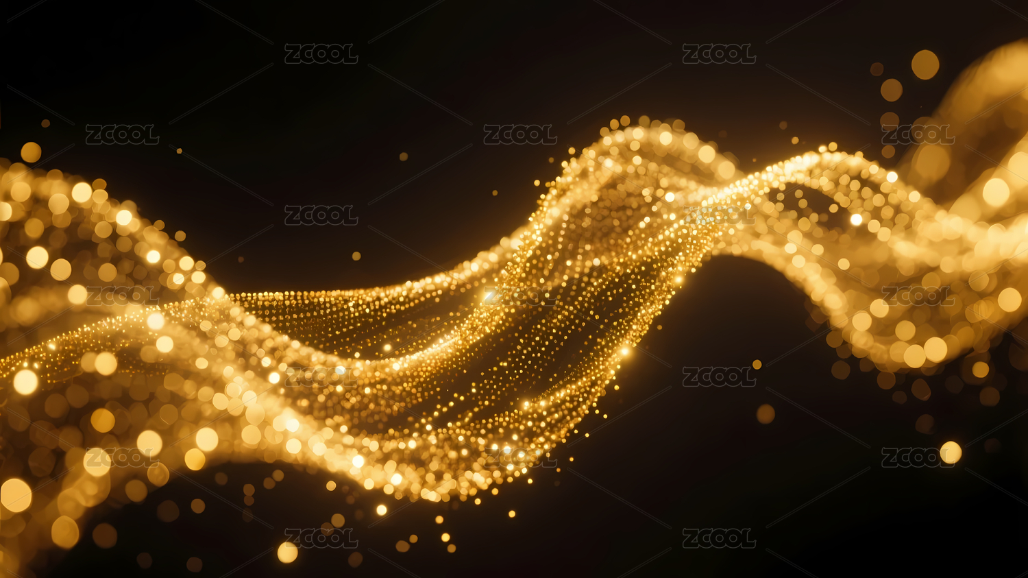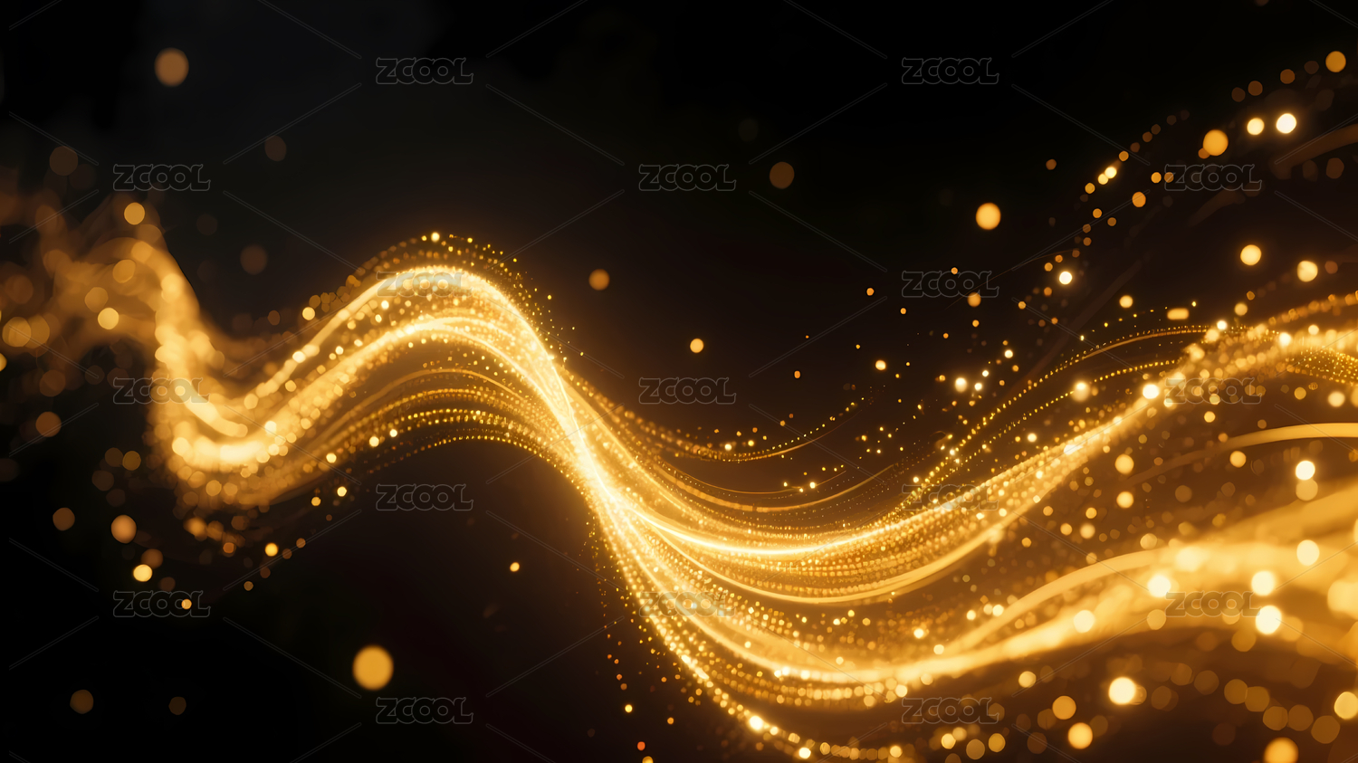 金色粒子波浪映衬深色底