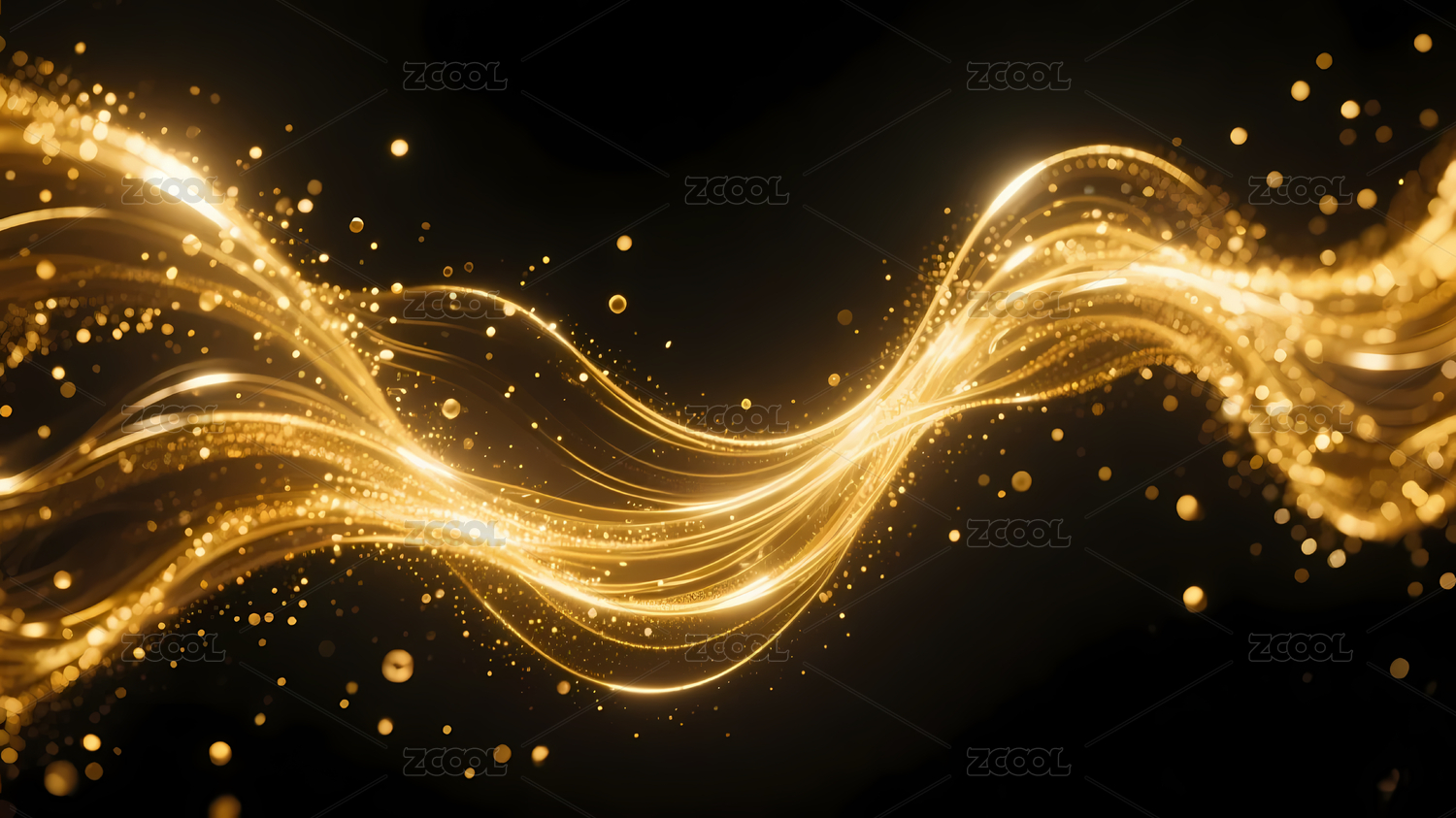 金色波浪光带的璀璨背景