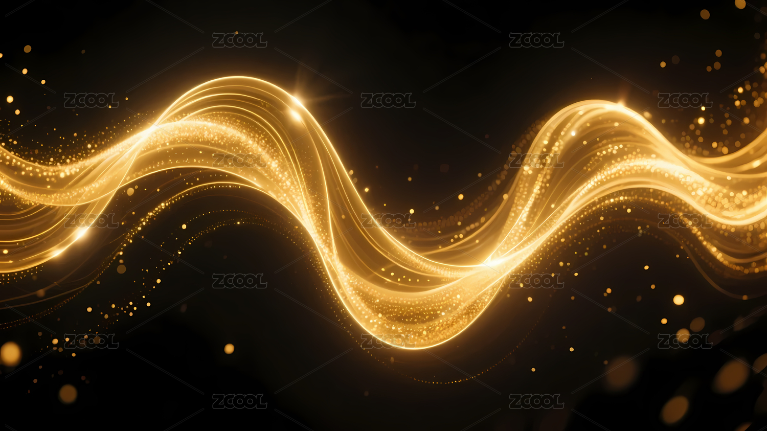 金色光波与粒子深色背景
