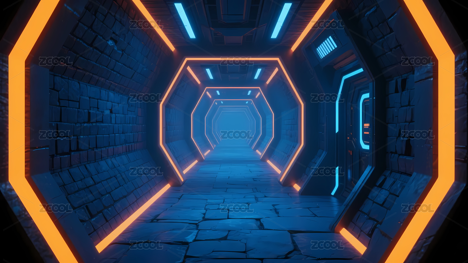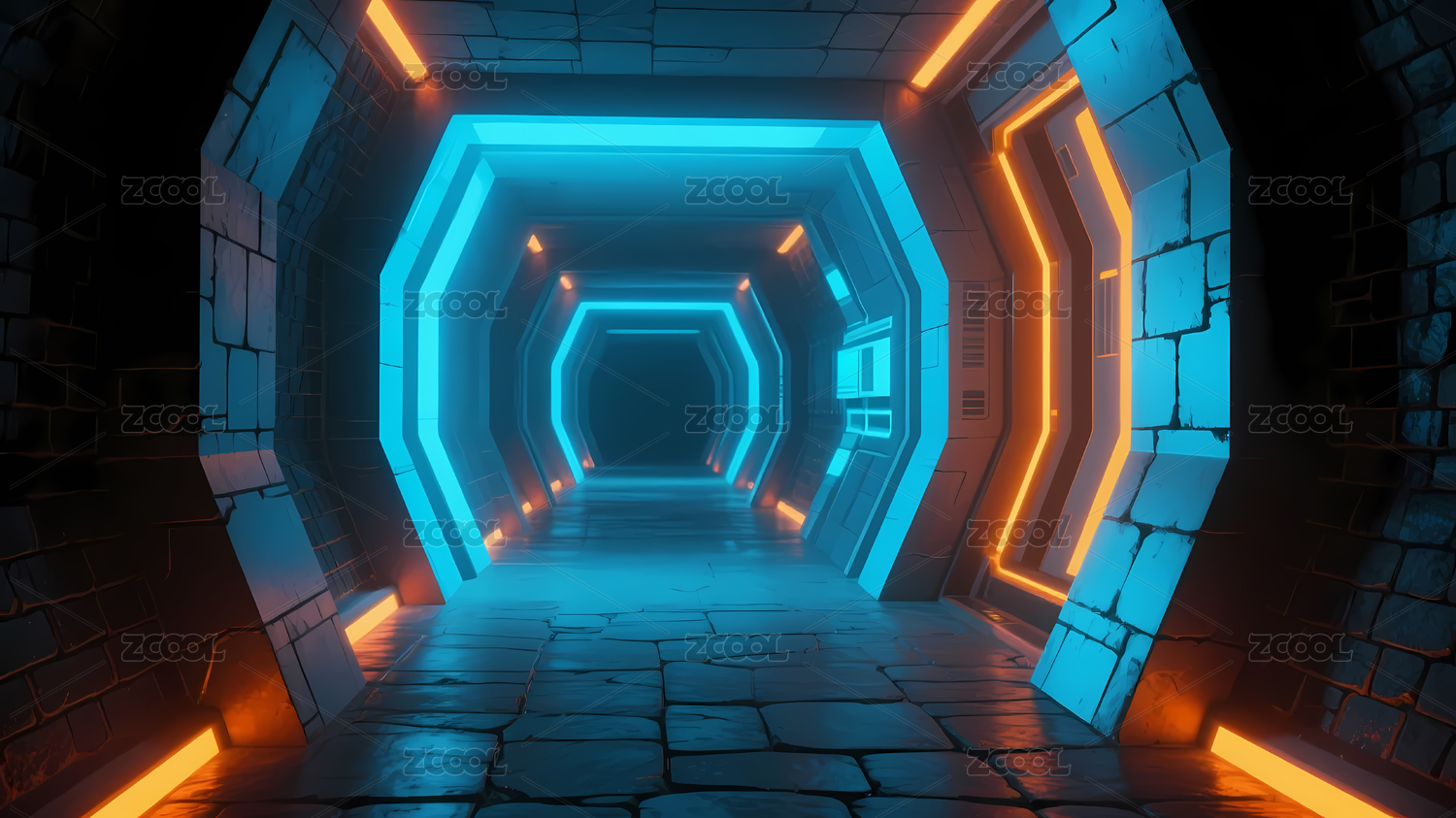 橙蓝霓虹科幻走廊