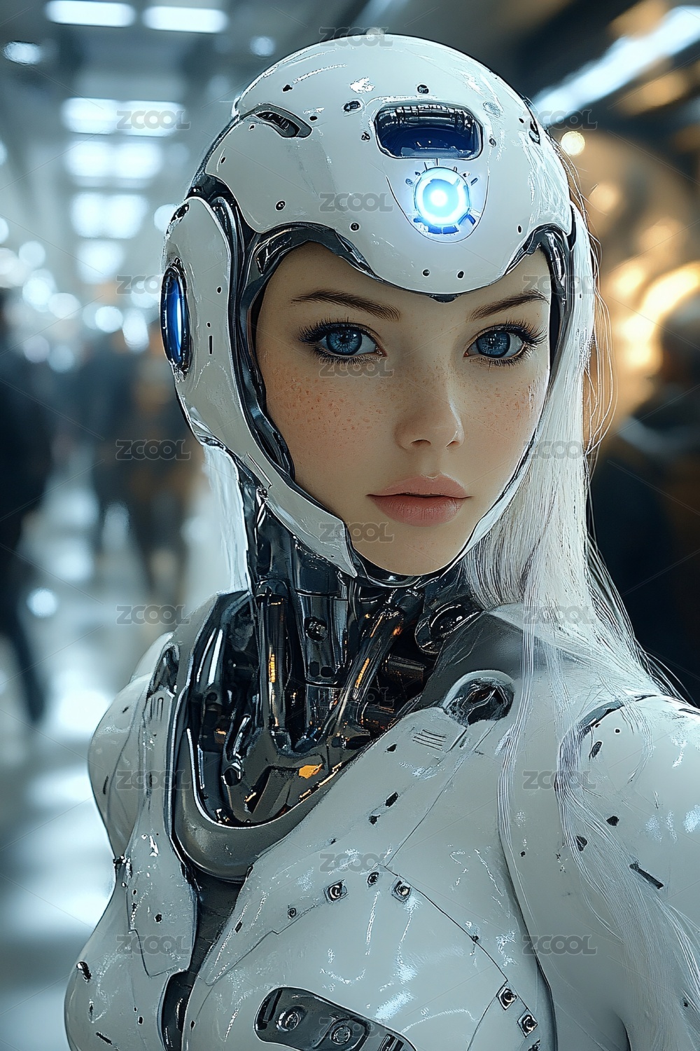 女性,机器人,科幻,机械,插画,未来感,AI,头盔,金属,白色