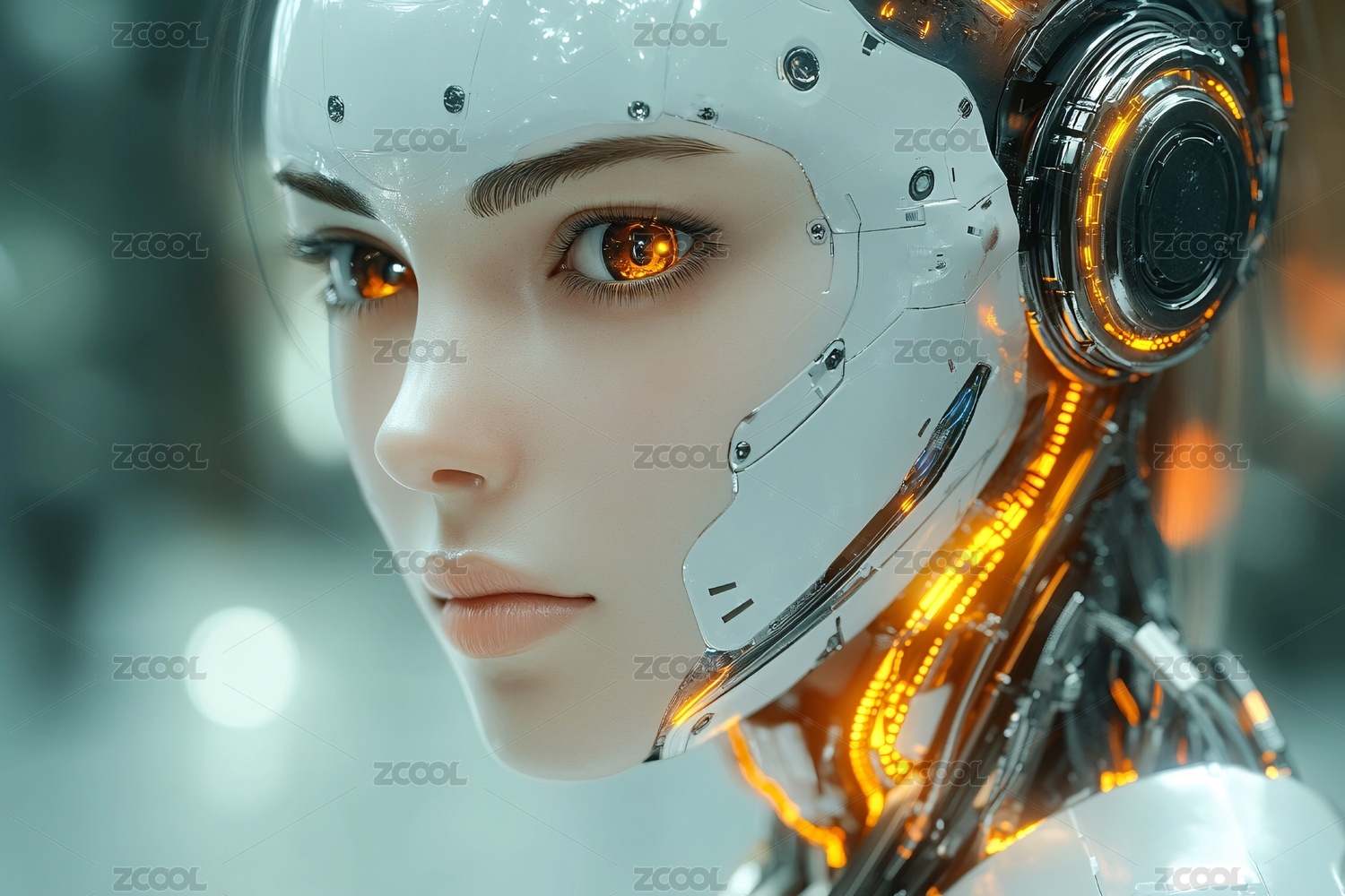 科幻风机器人女性头部特写