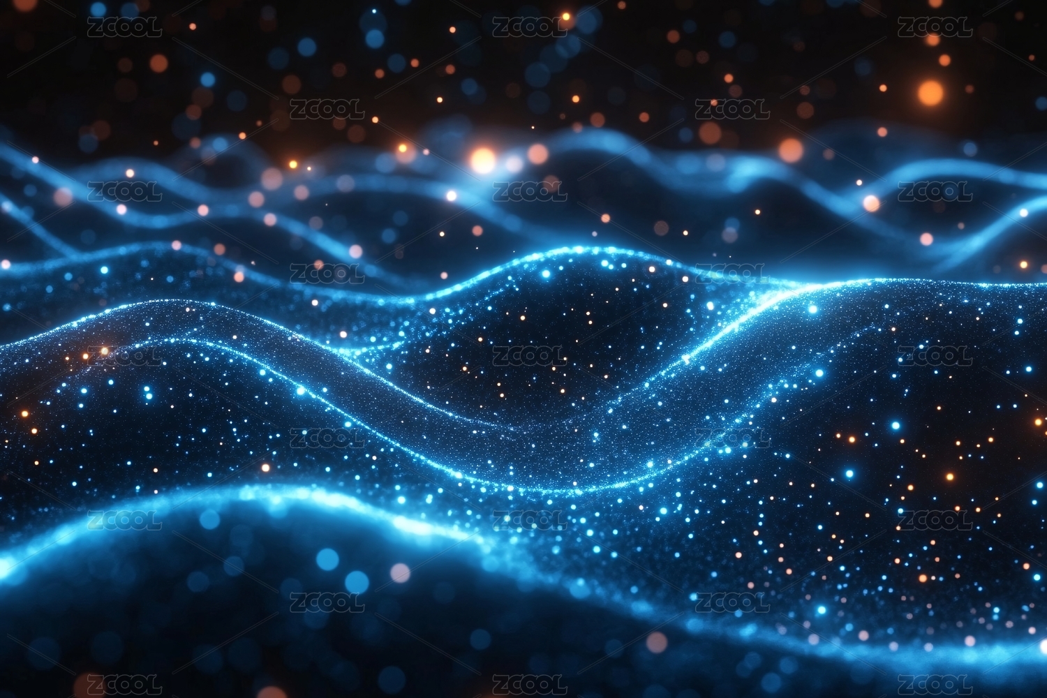 梦幻蓝色粒子波浪背景图