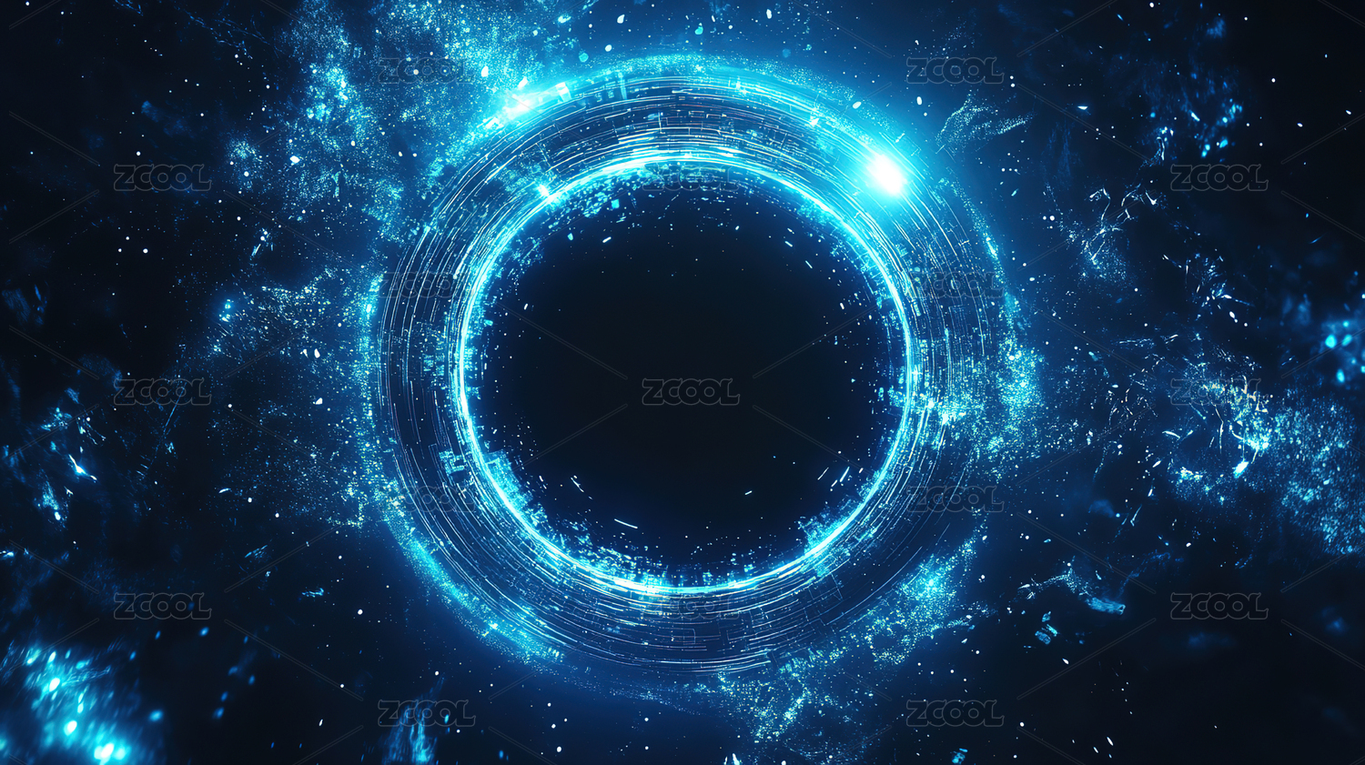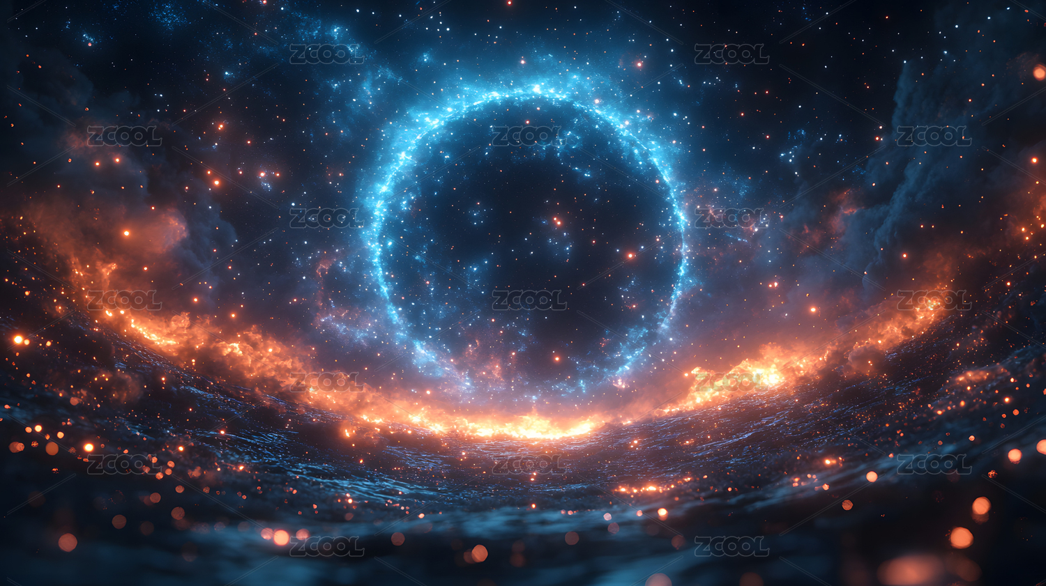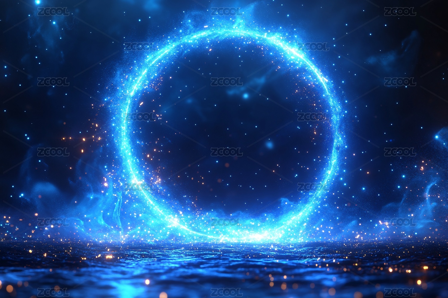 星空,圆环,能量,蓝色,光效,粒子,背景,插画,科幻,宇宙