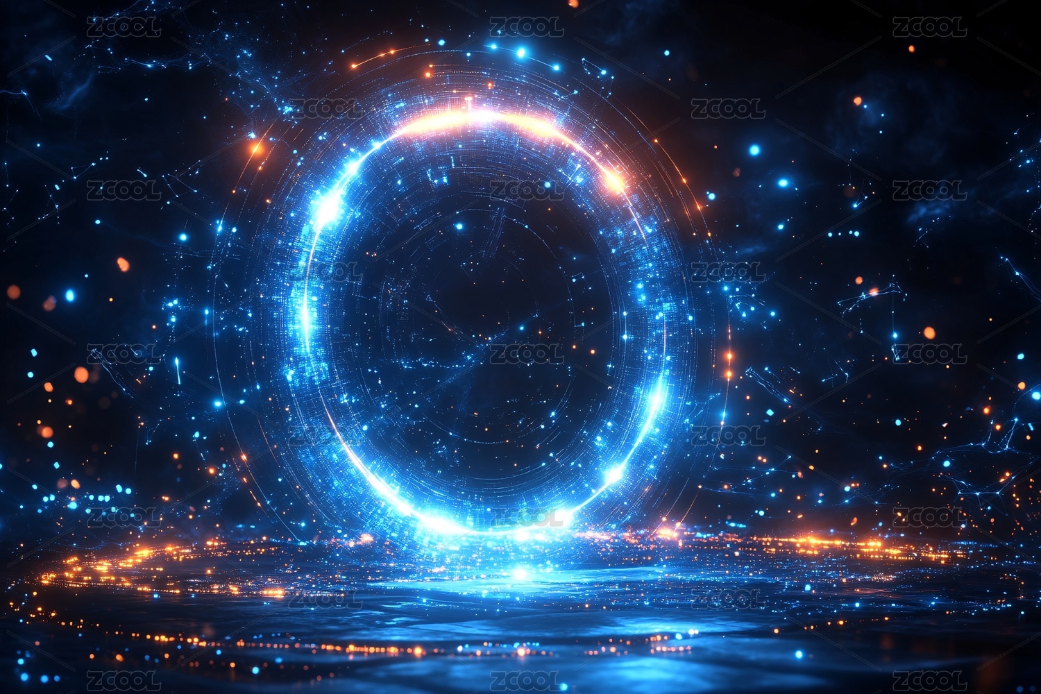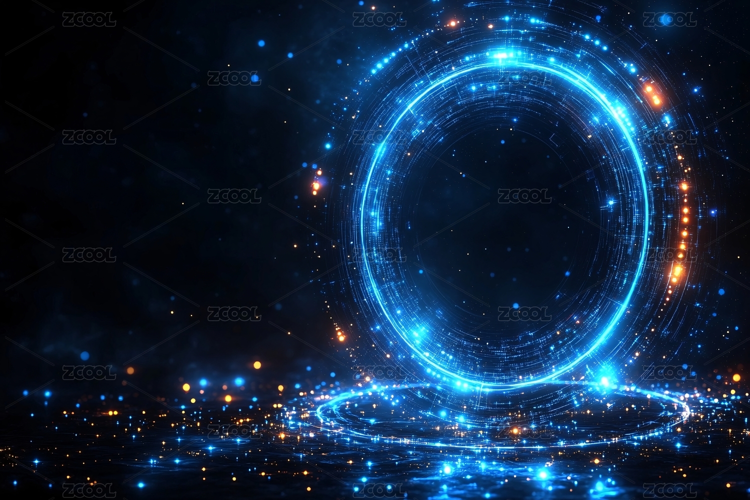 光环,蓝色,梦幻,背景,光效,粒子,星空,插画,特效,元素