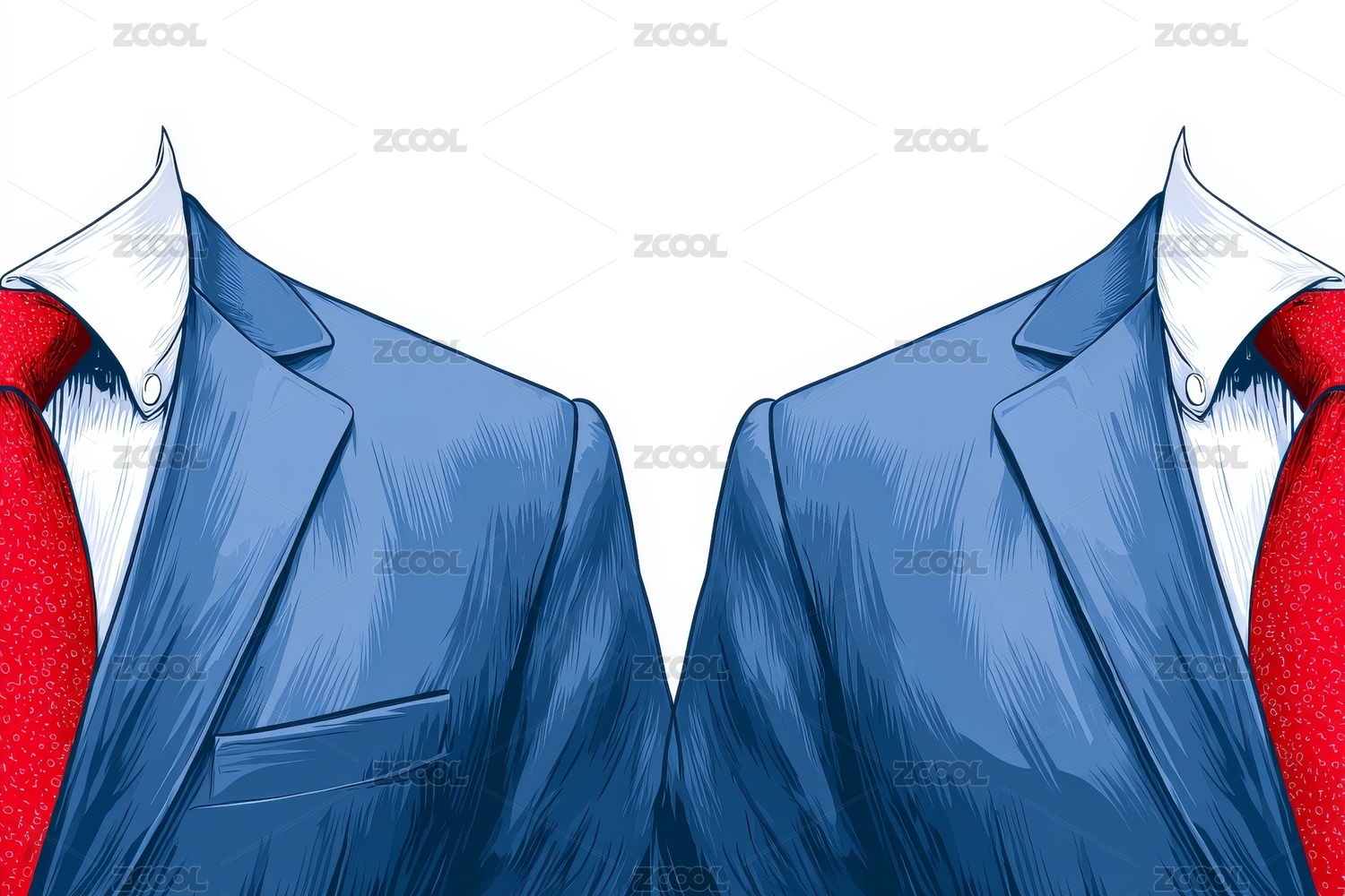 两件,蓝色,西装,红色,领带,正式,商务,职业,着装,规范