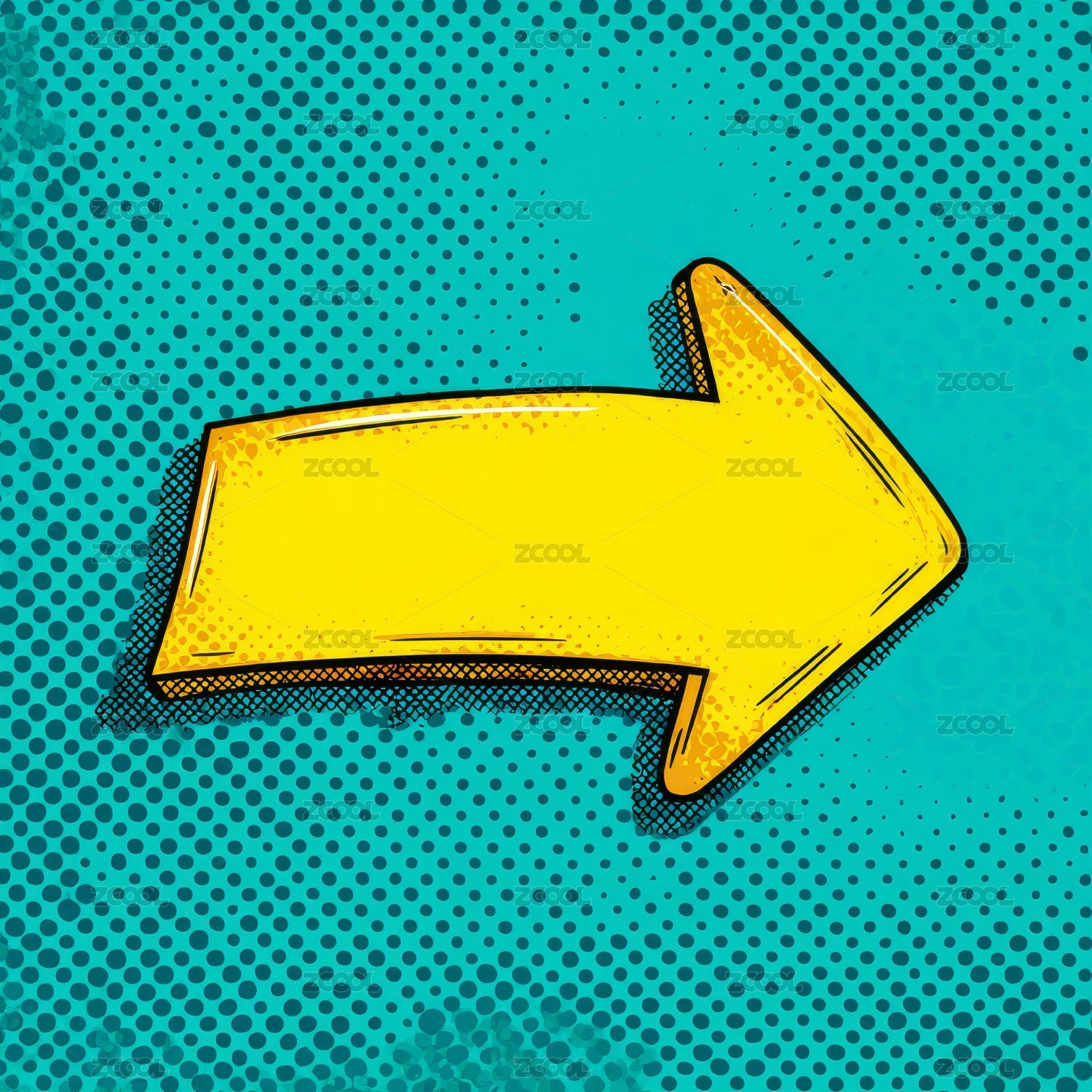 漫画风格黄色右箭头搭配半色调蓝色背景