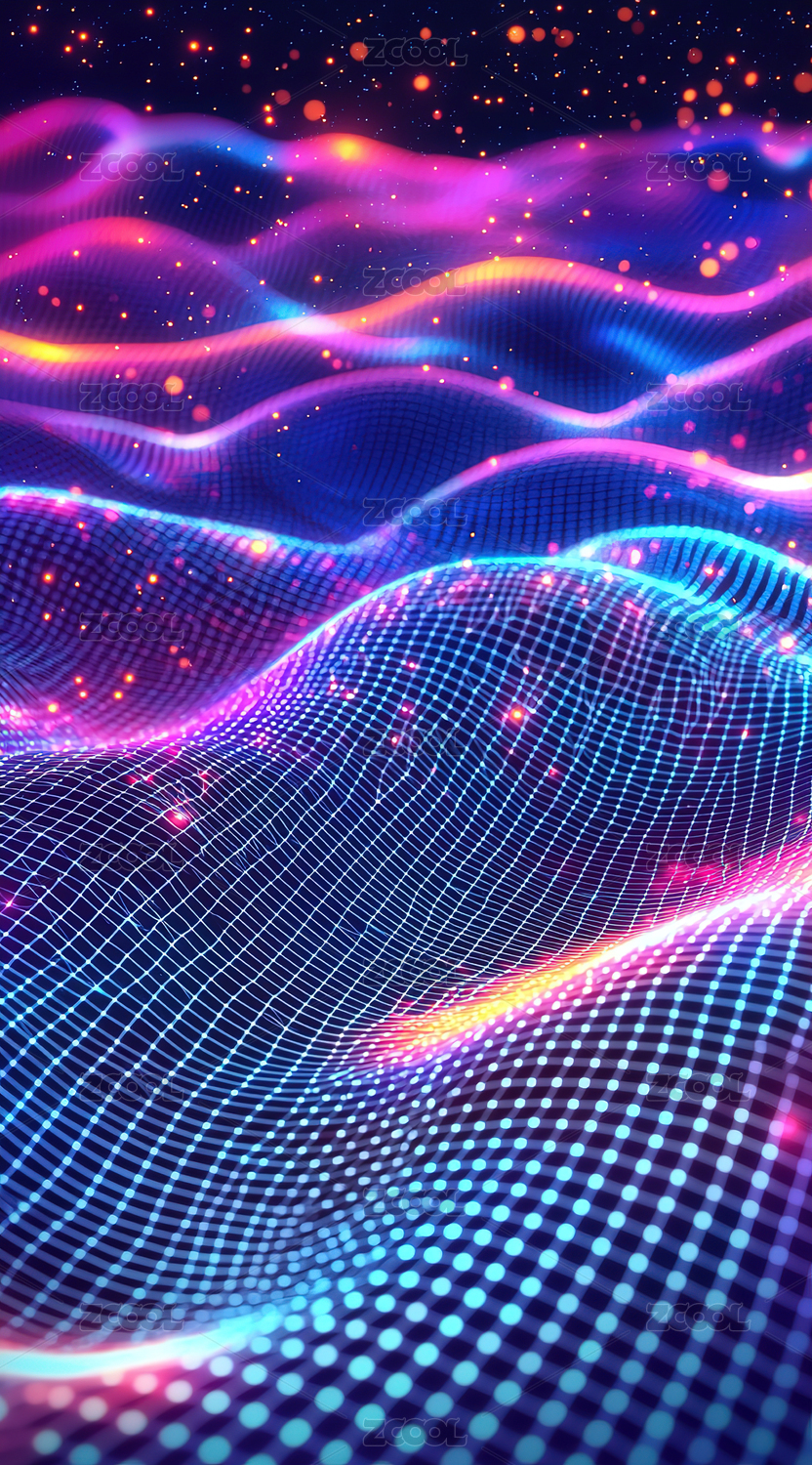 波浪,星空,光线,科技感,插画,矢量,线条,粒子,宇宙,未来感