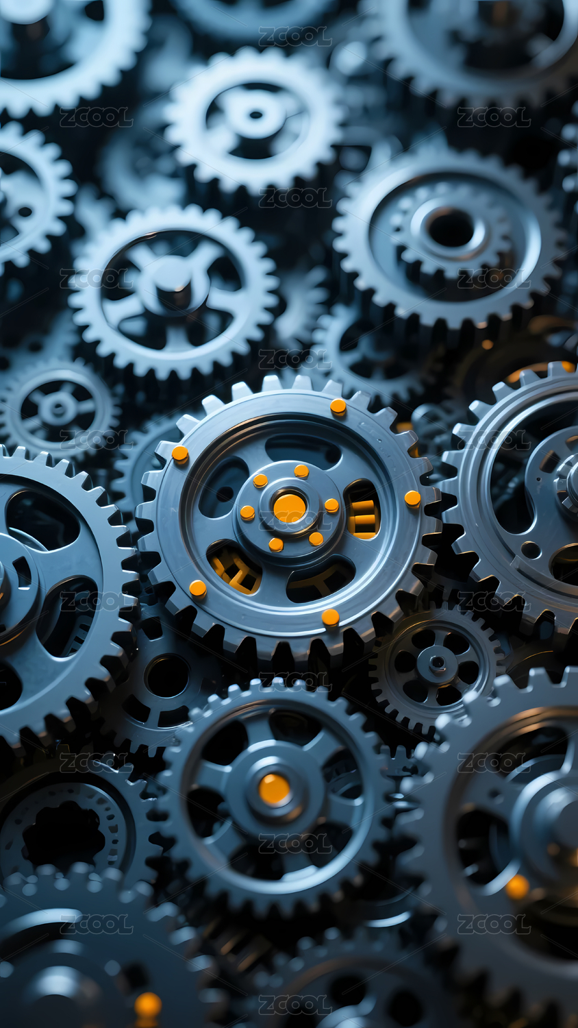 现代工业机械齿轮精密运转,活力蓝黄风格