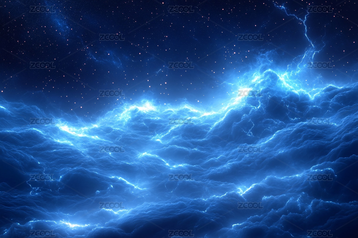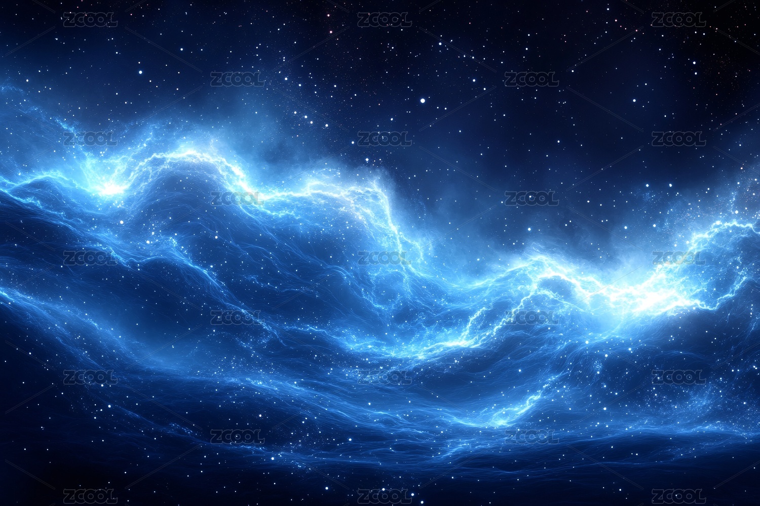 星空,宇宙,蓝色,波浪,光效,插画,背景,梦幻,神秘,科幻