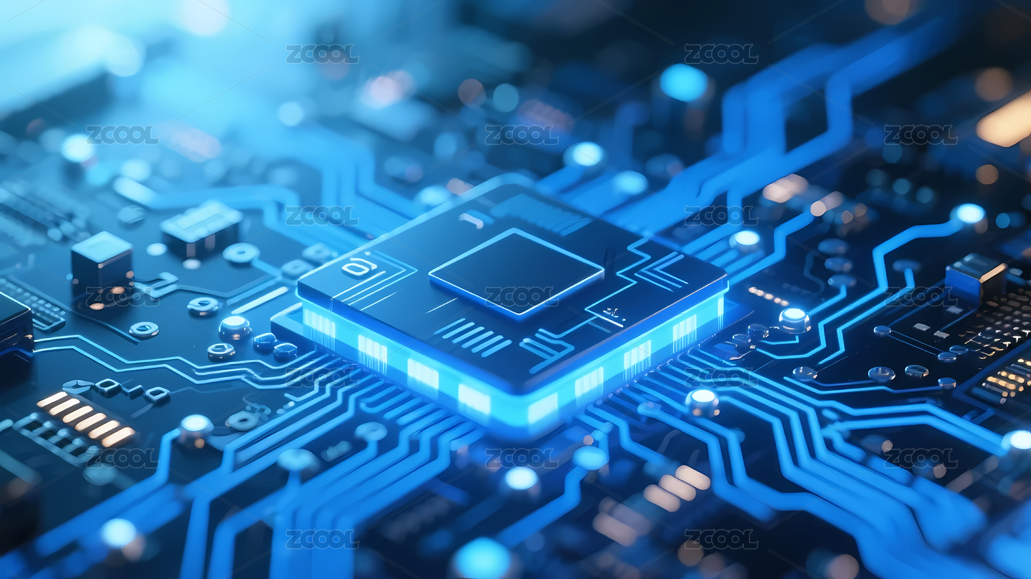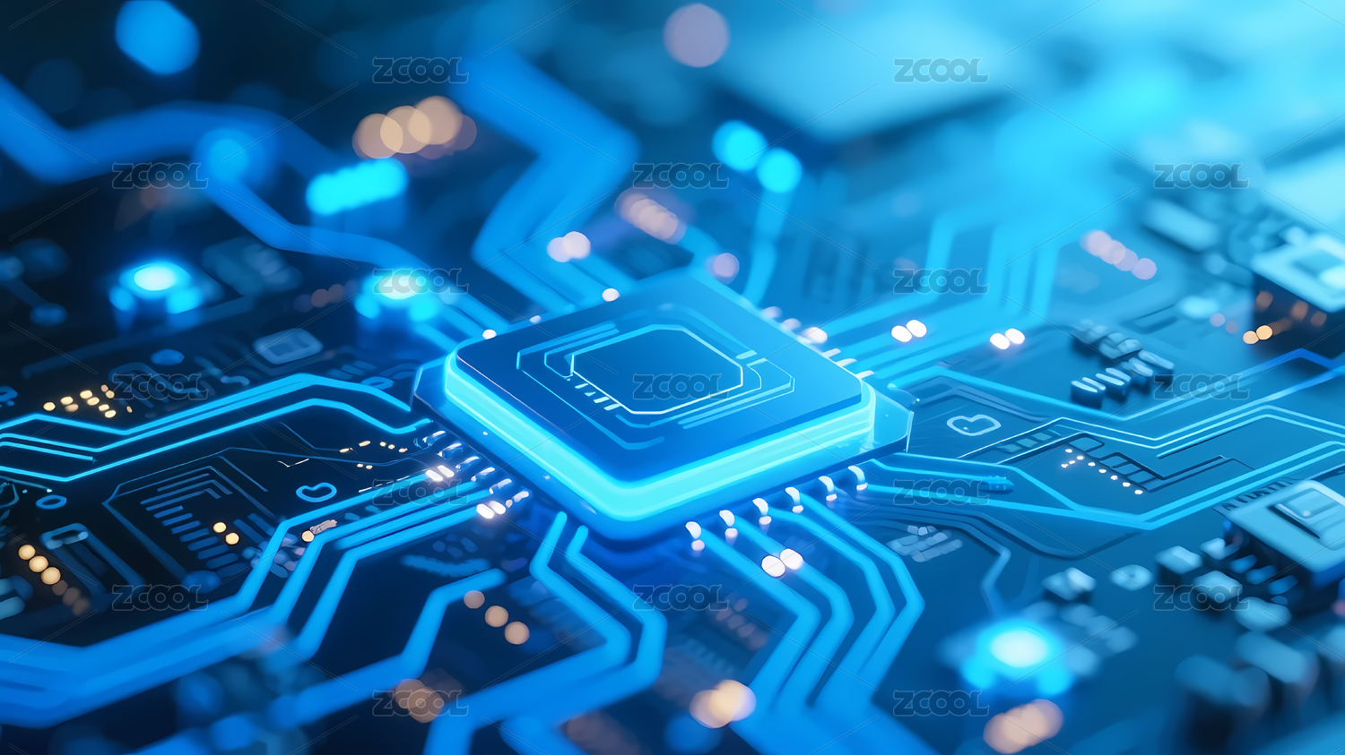 电路板,芯片,科技,蓝色,灯光,背景,插画,矢量