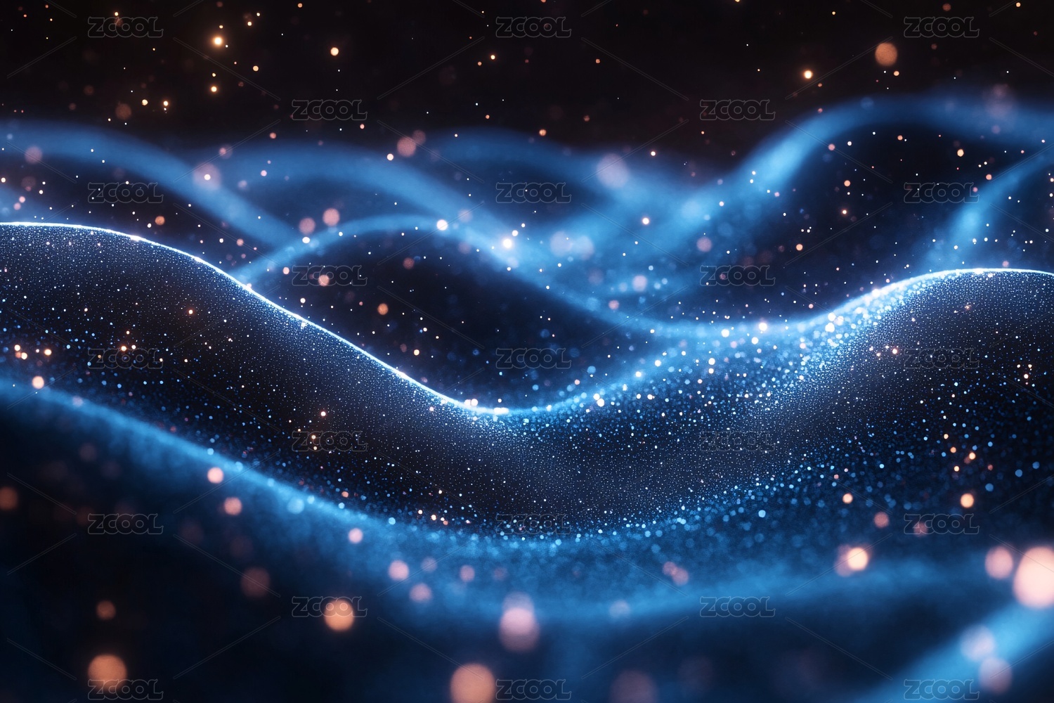 蓝色粒子波浪梦幻背景