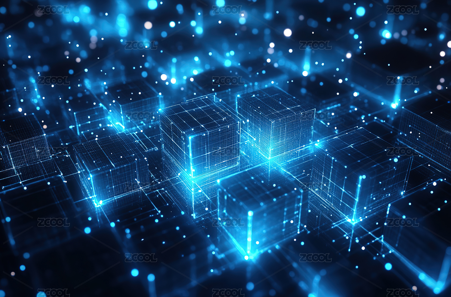 数据立方体,科技,蓝色,发光,线条,网格,背景,矢量,插画,未来感