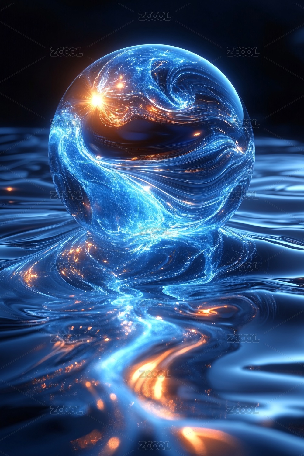 球体,光影,流动,蓝色,橙色,科幻,插画,艺术,视觉,特效
