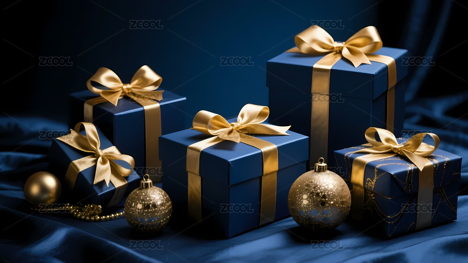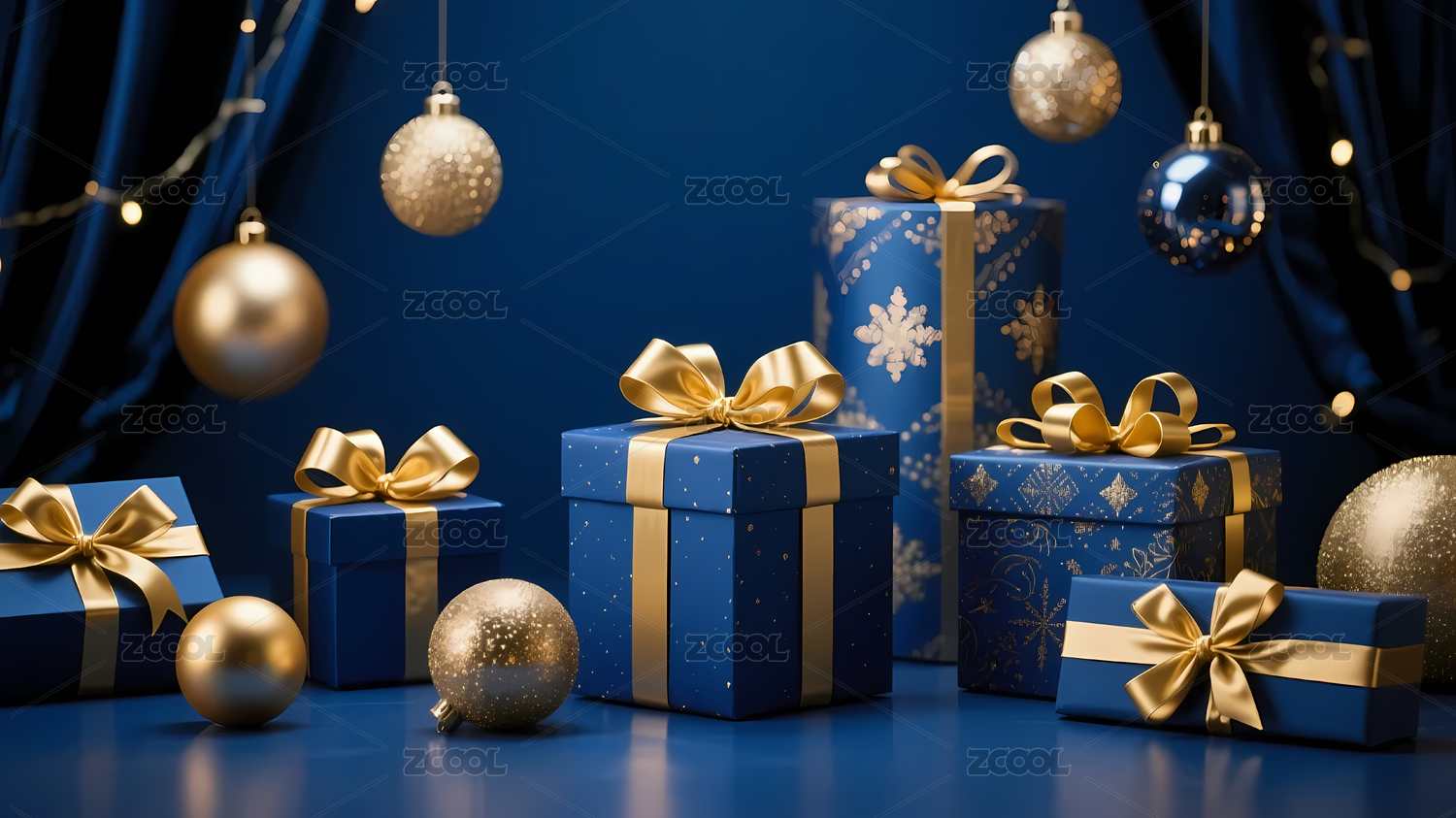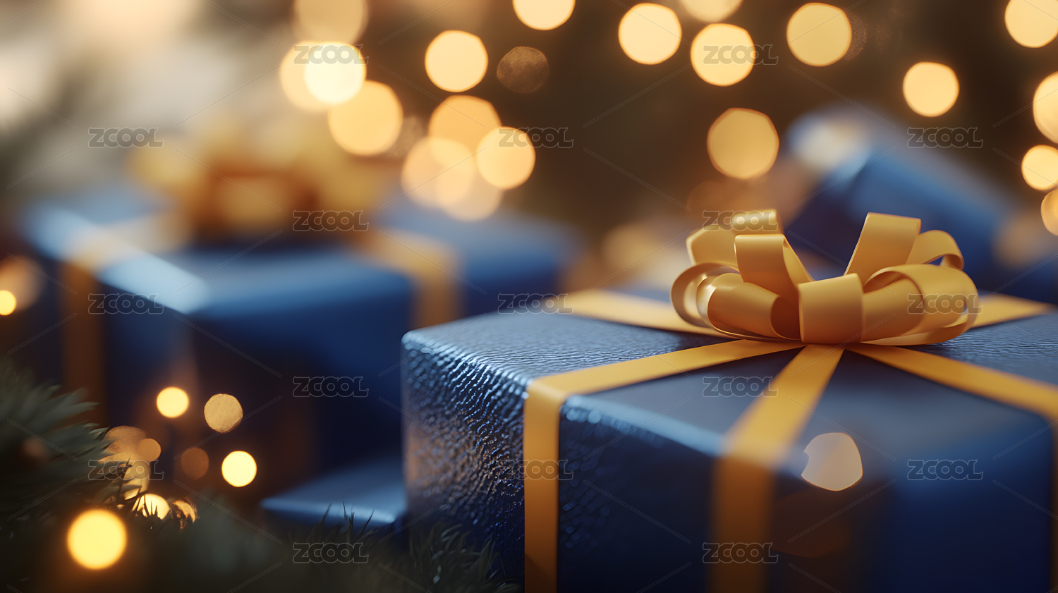 蓝色礼物金色装饰
