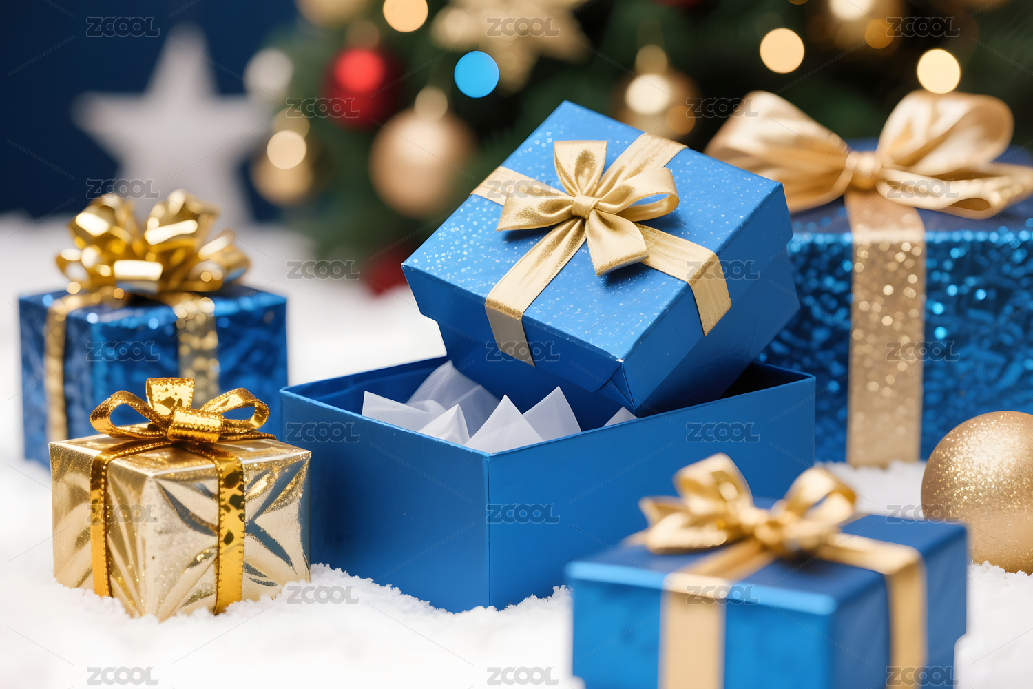 蓝色礼物盒金色装饰