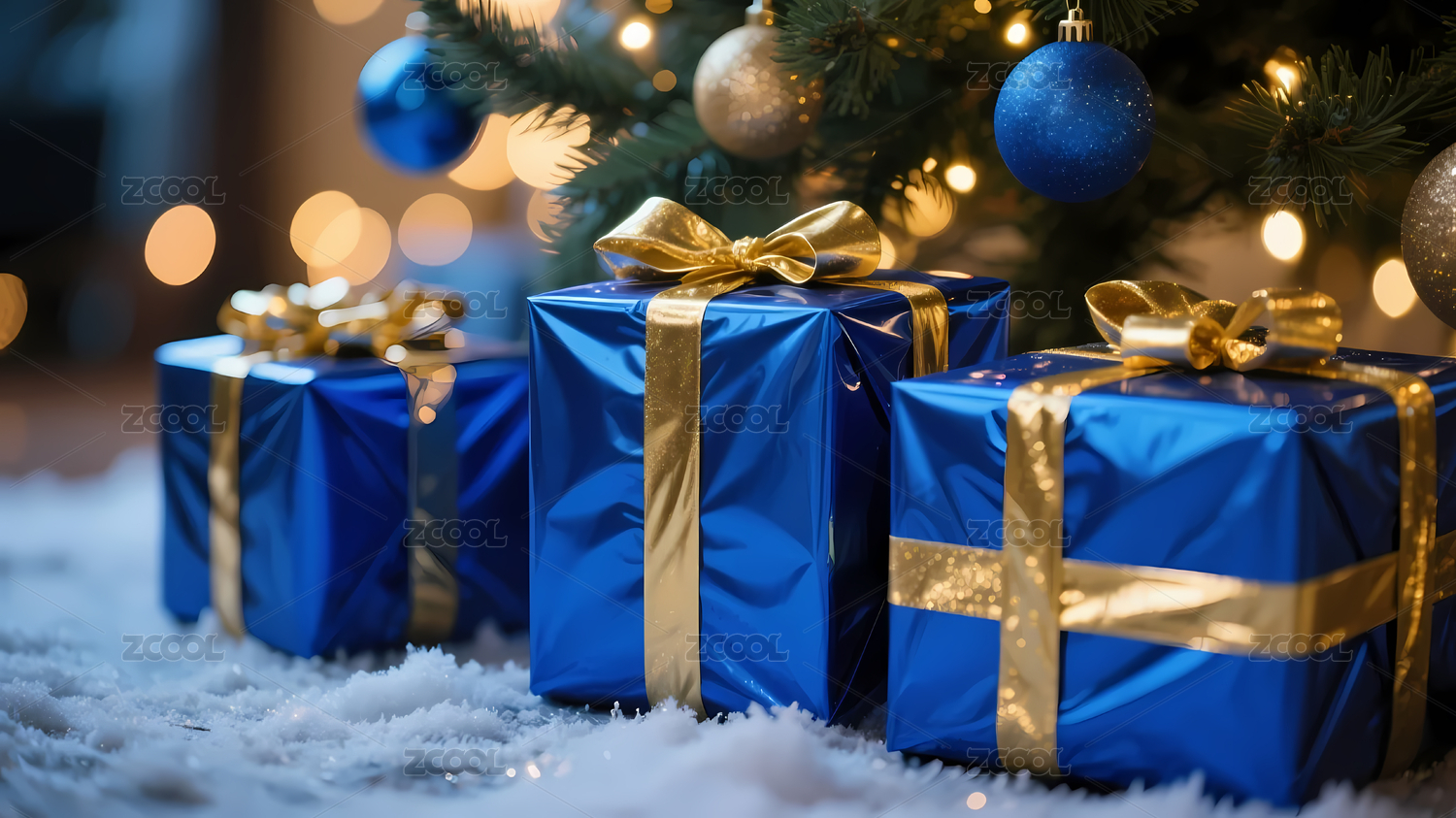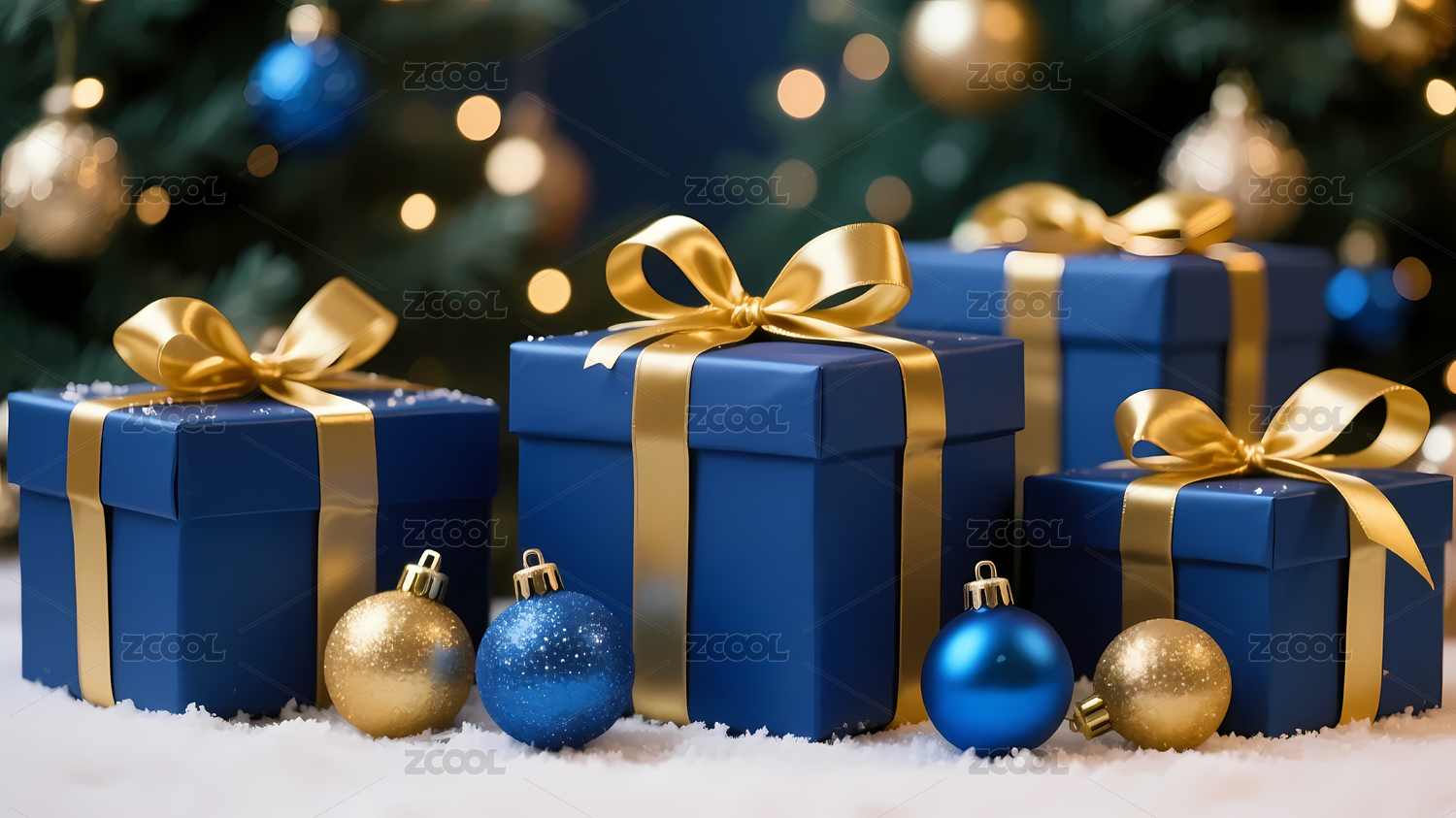 蓝金圣诞礼物树装饰