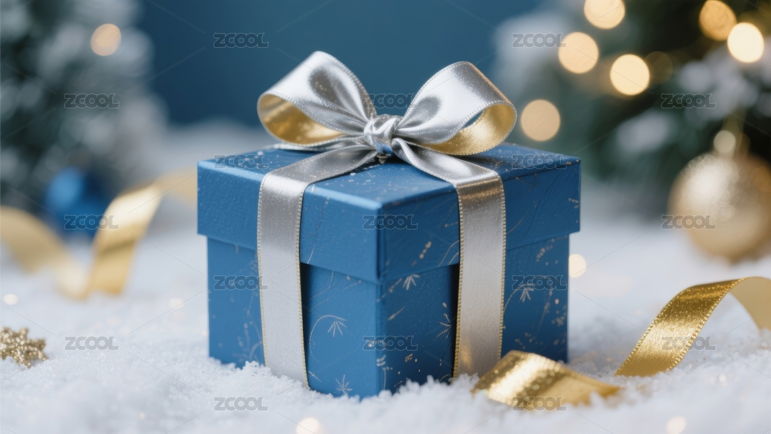 蓝色礼盒金丝带节日