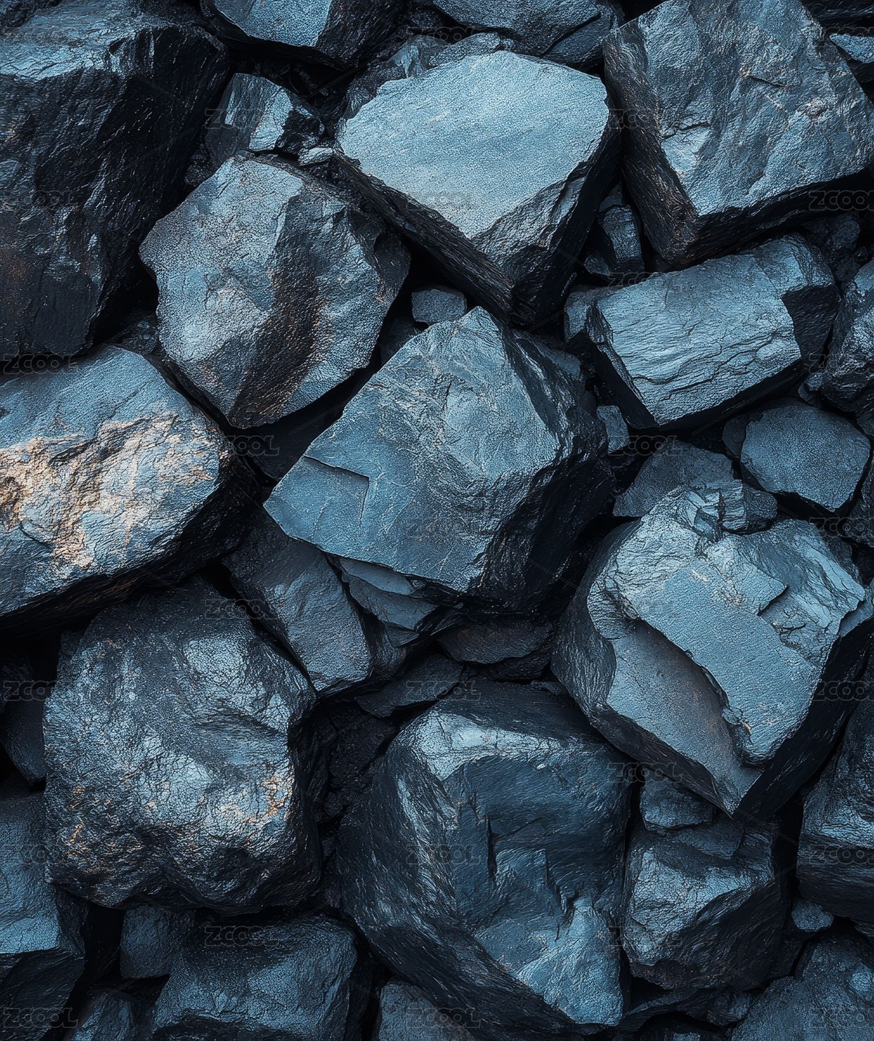 深蓝色岩石堆特写