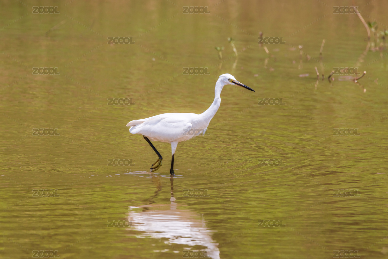 一只白鹭在海洋湿地中觅食
