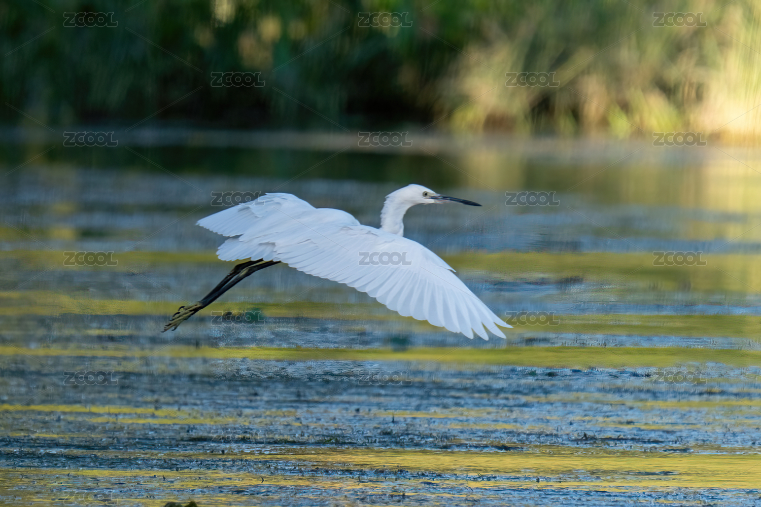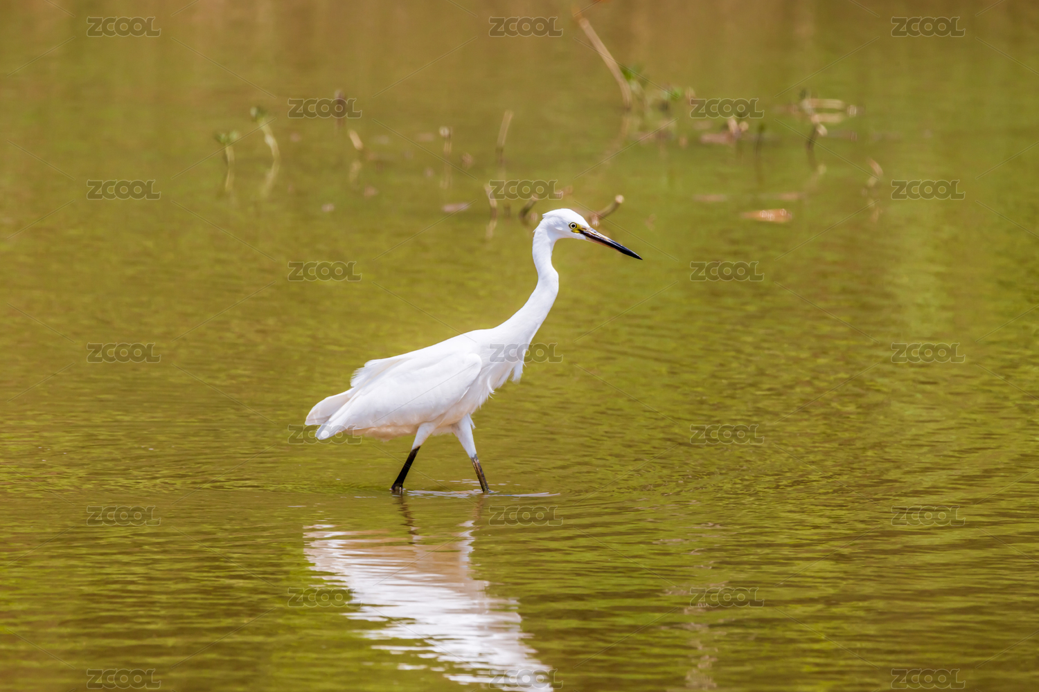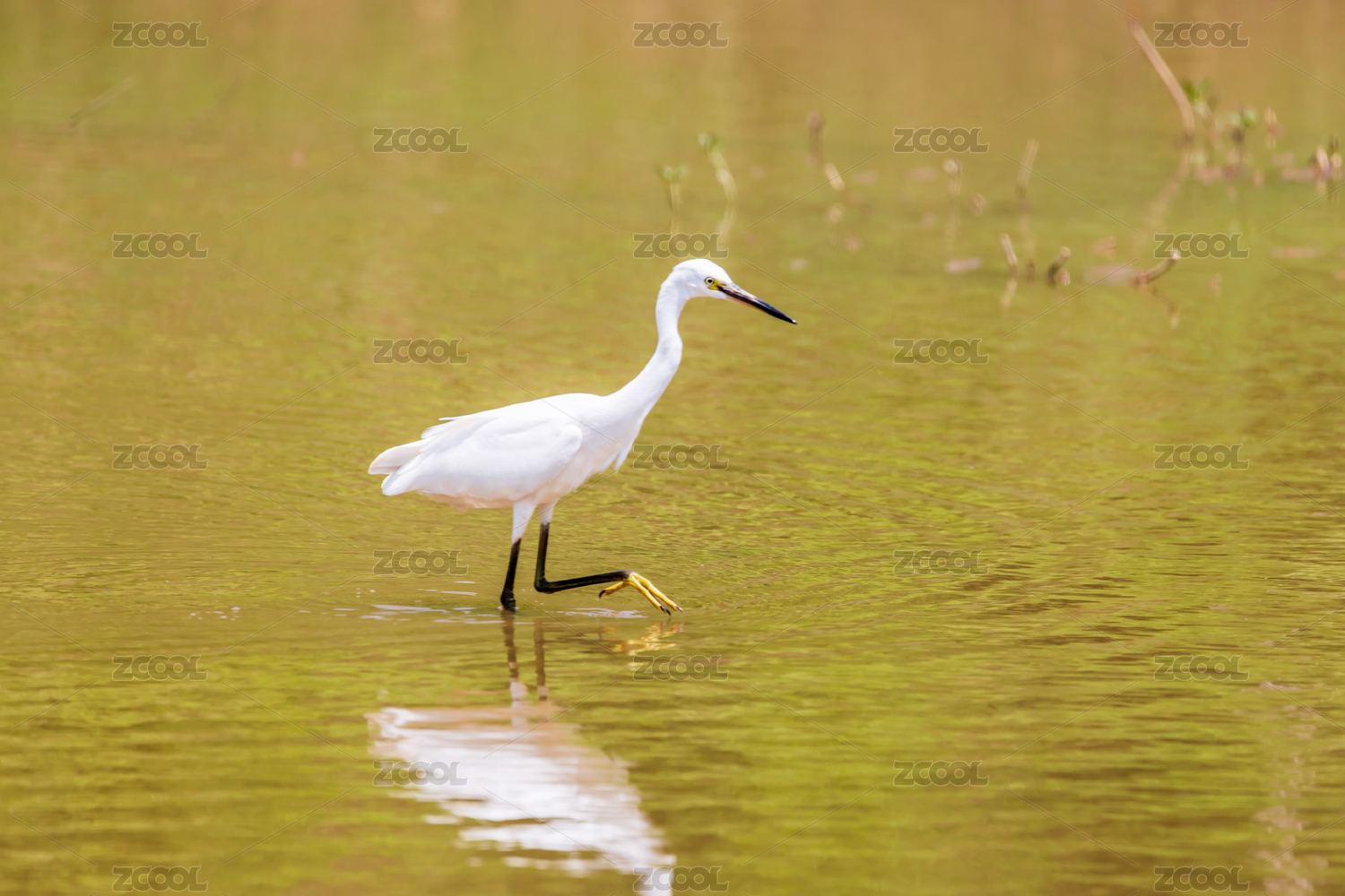 中国黑龙江大庆龙凤湿地候鸟黄嘴白鹭