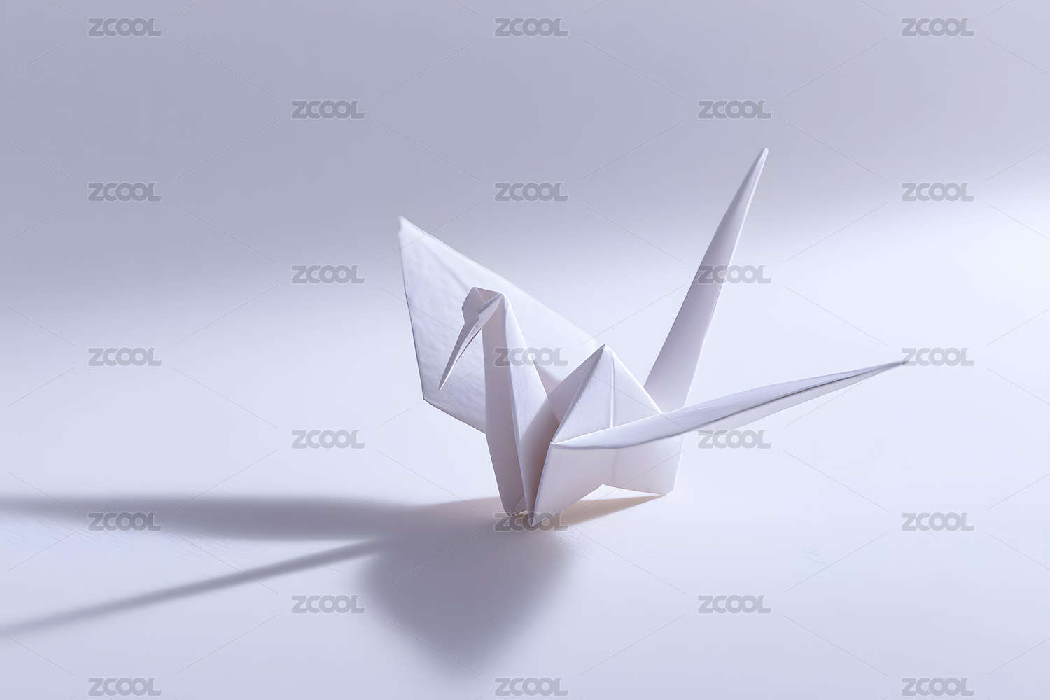 白色背景上一只纸鹤