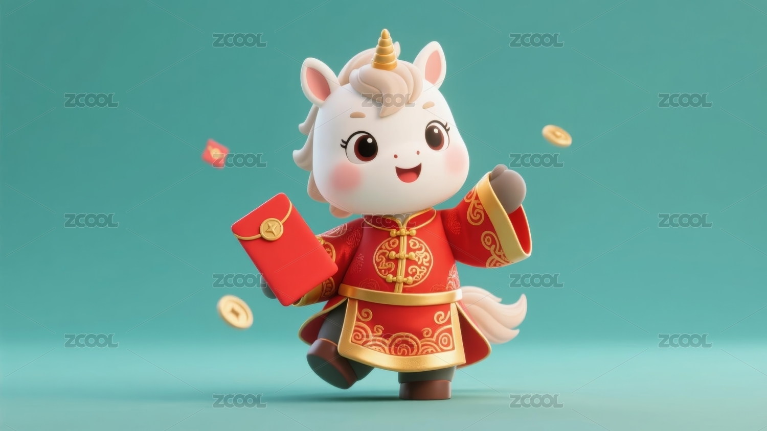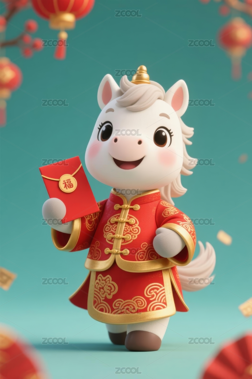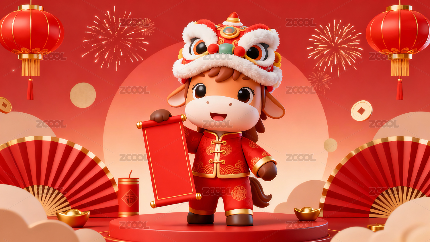 主视觉,商业,卡通,小马,喜庆,春节,场景,红包,灯笼,红色