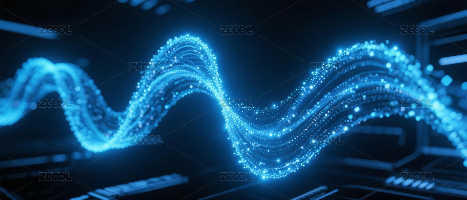 蓝色粒子构成的科技波浪