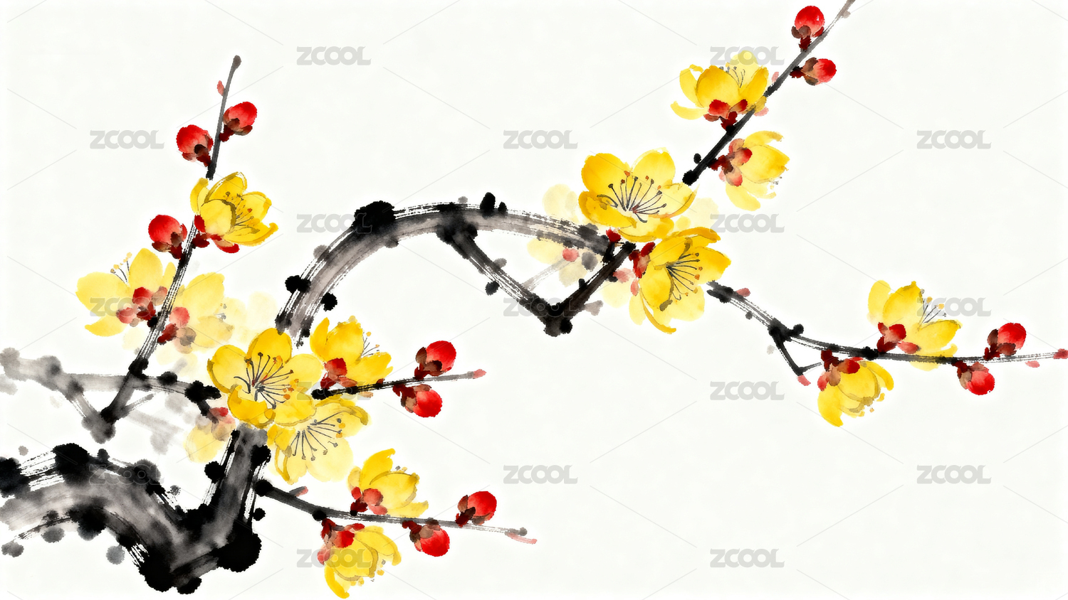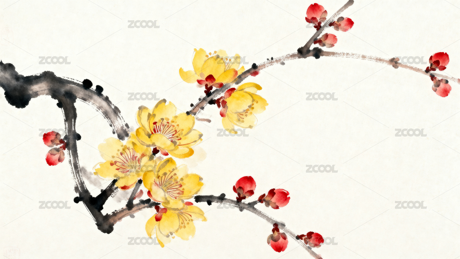 主视觉,场景,艺术,装饰,淡雅,美学,风格,中式,梅枝,水墨