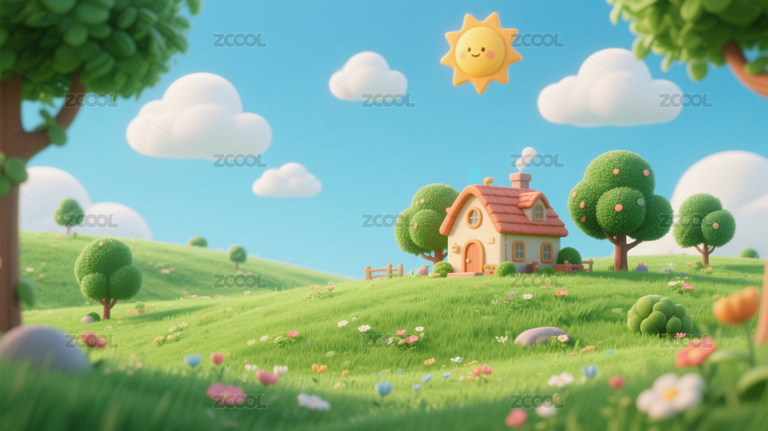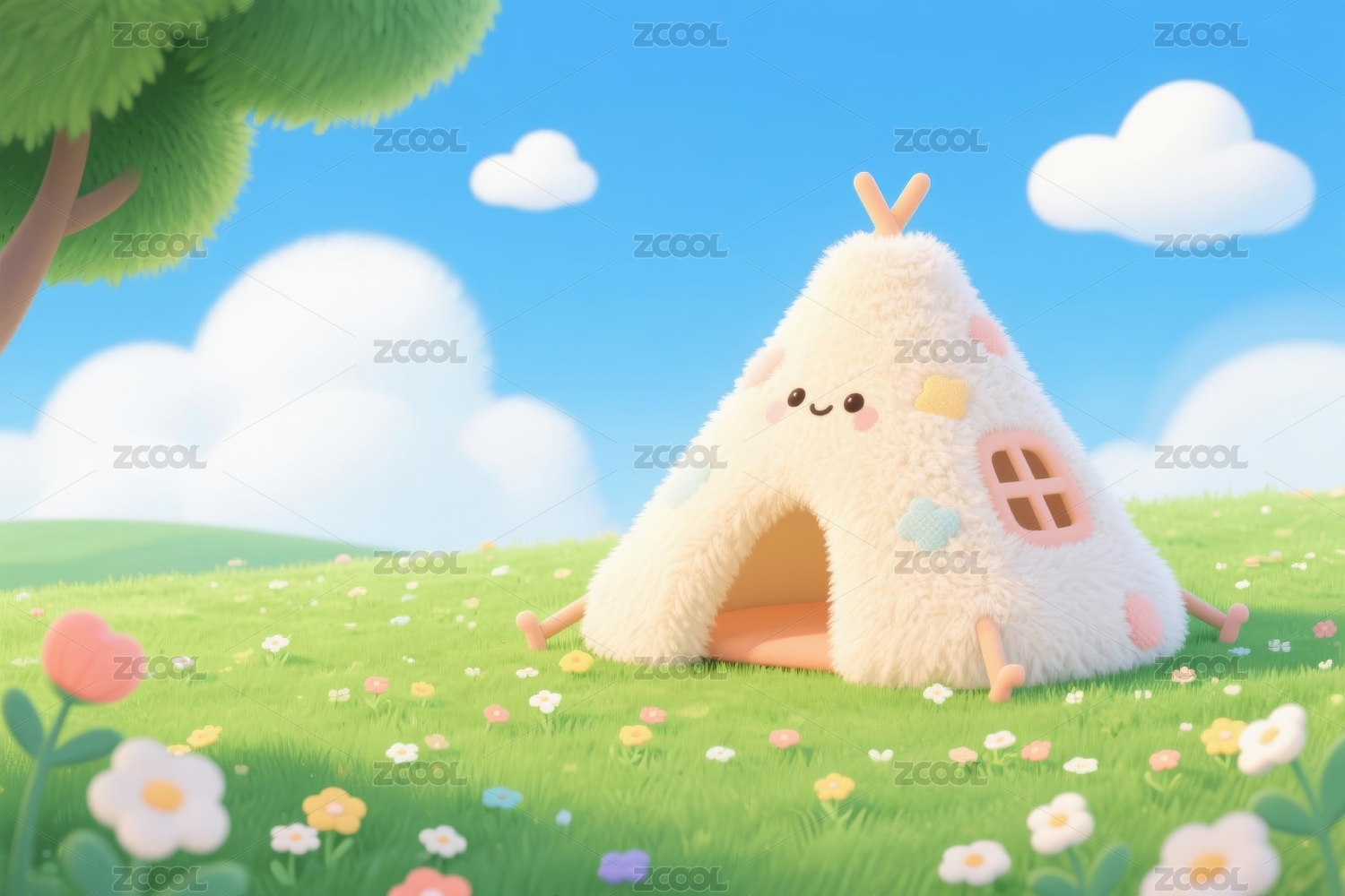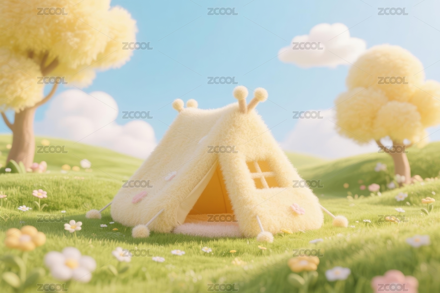 主视觉,场景,商业,卡通,帐篷,梦幻,户外,小屋,草地,花朵