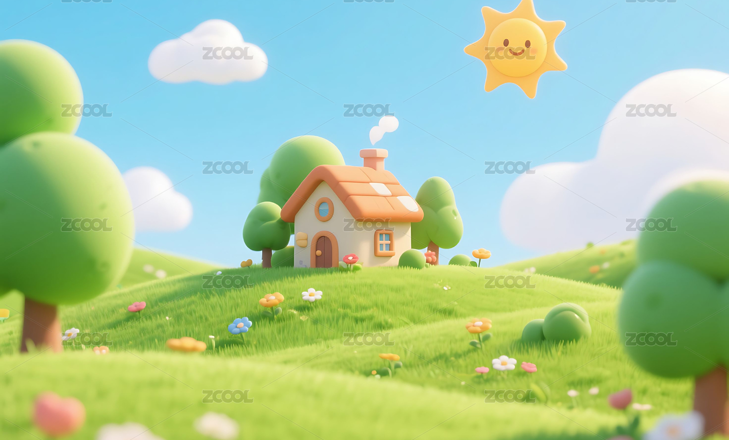 主视觉,场景,商业,卡通,帐篷,梦幻,户外,小屋,草地,花朵