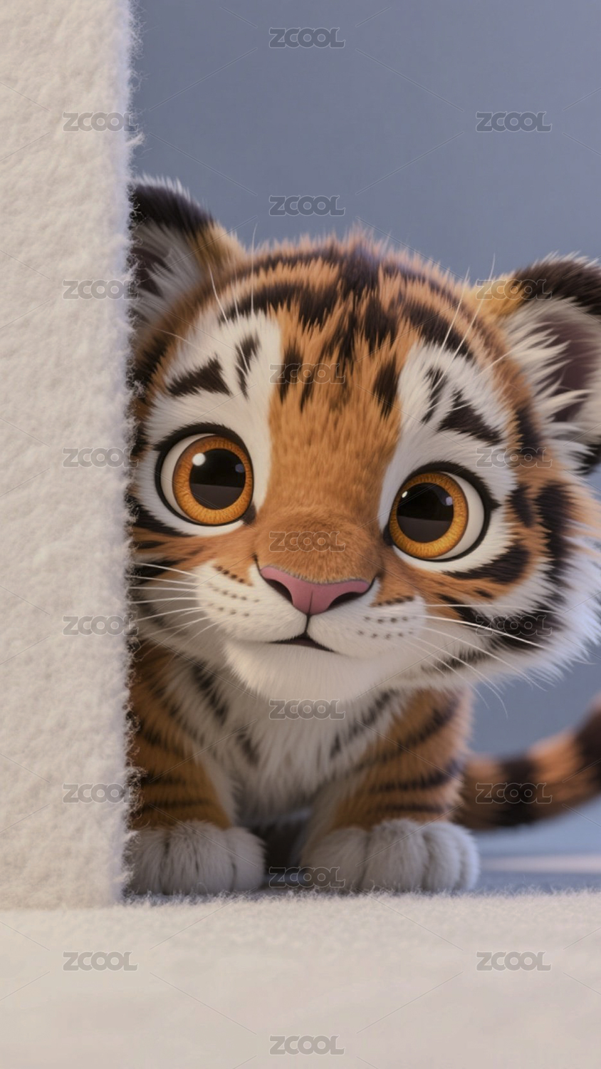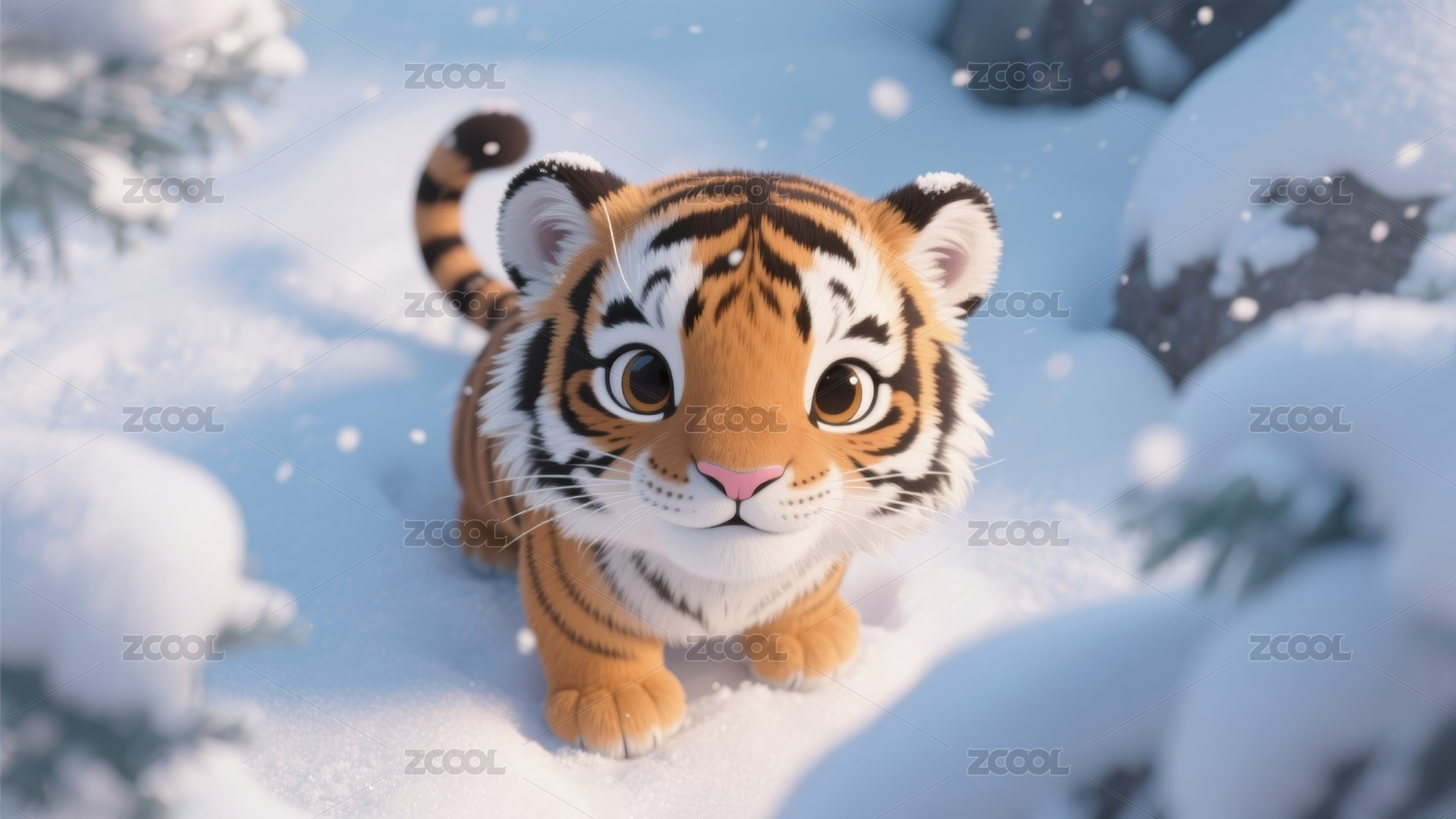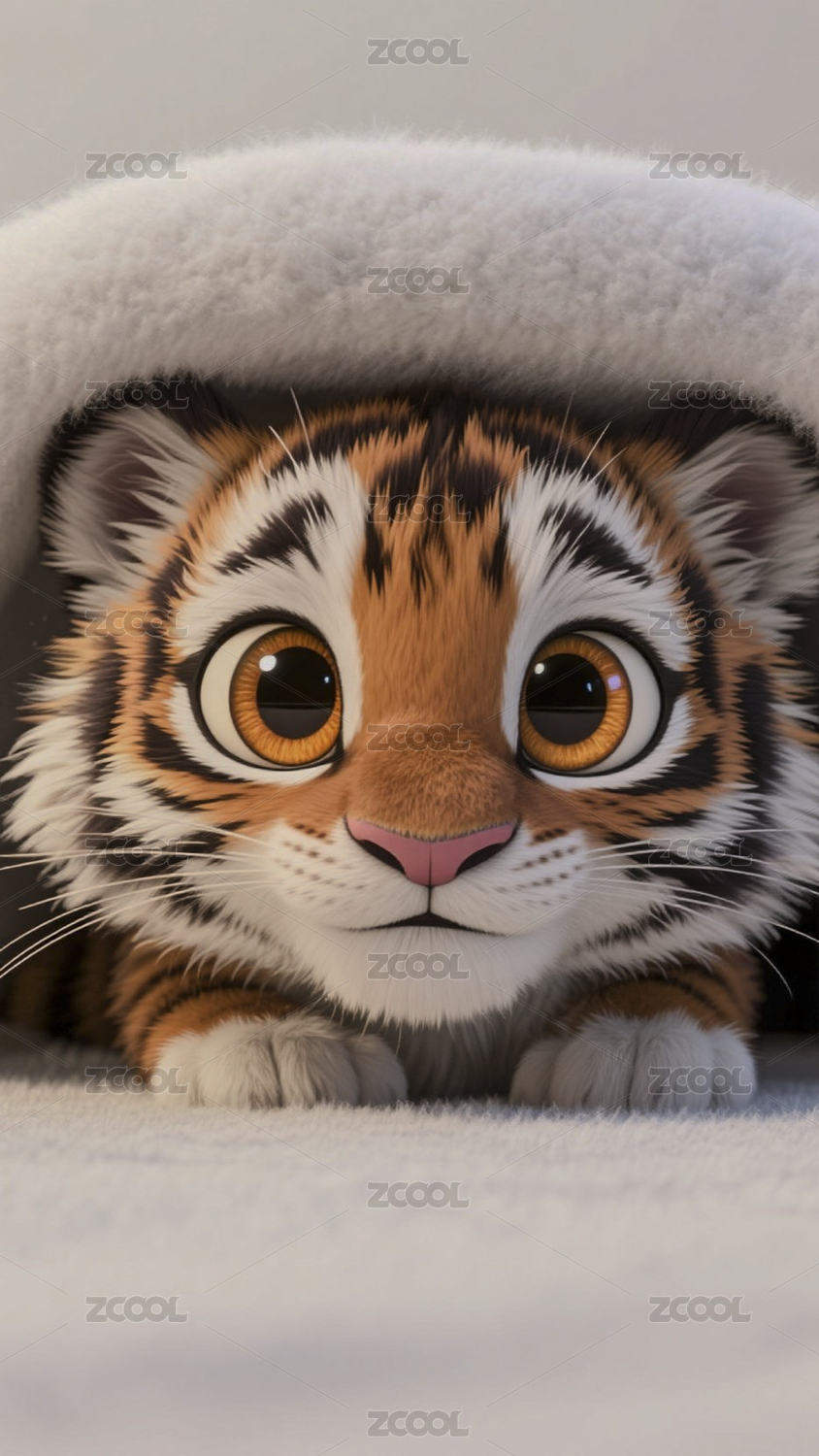 老虎虎年可爱唯美野生动物3D卡通插画壁纸