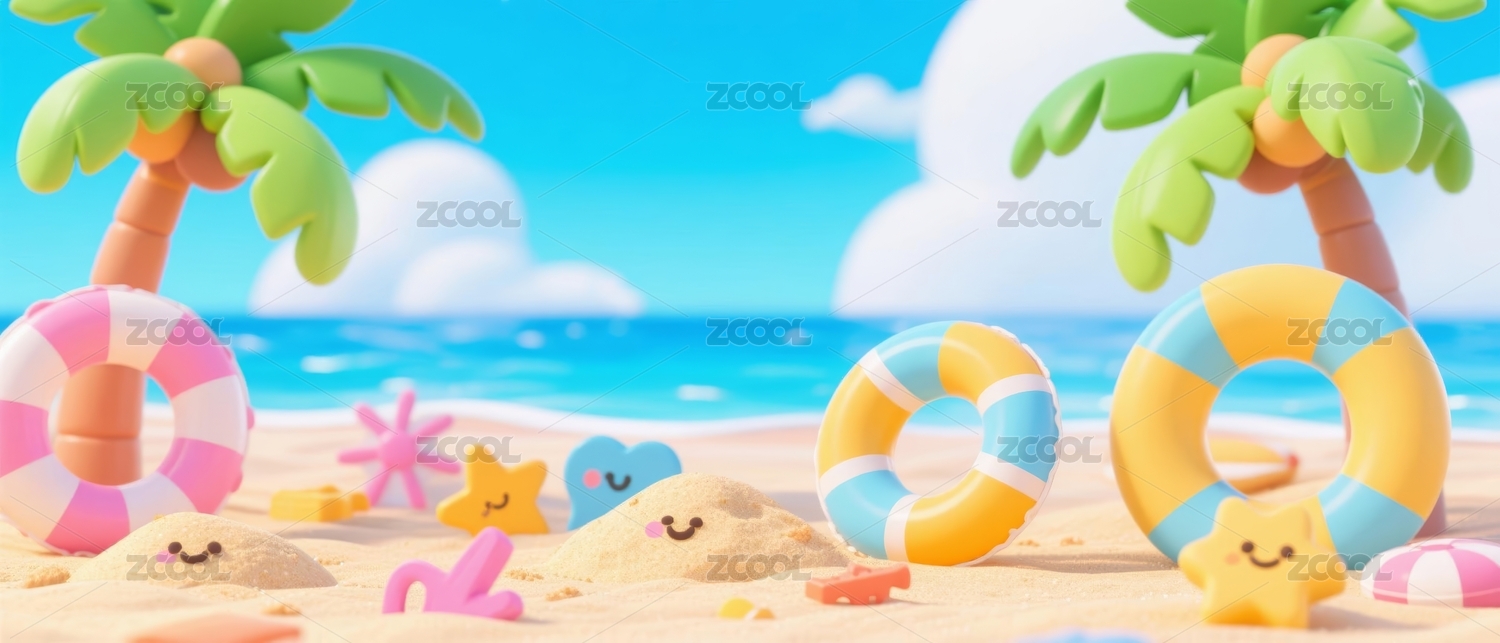 主视觉,商业,卡通,户外,场景,童趣,休闲,元素,氛围,海滩
