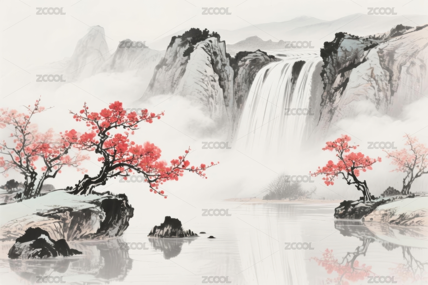 主视觉,商业,壁纸,装饰,背景,艺术,唯美,山水,瀑布,诗意