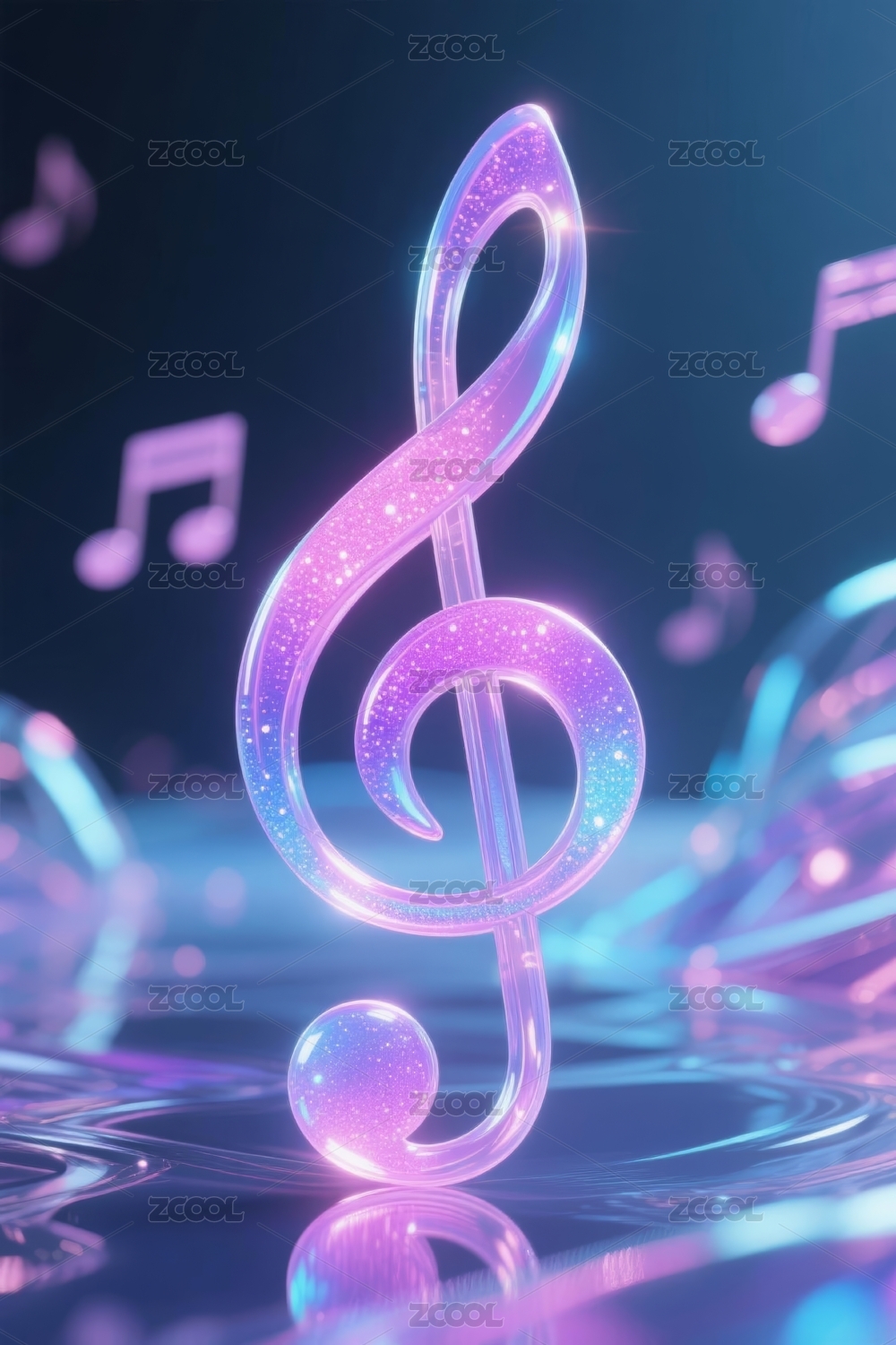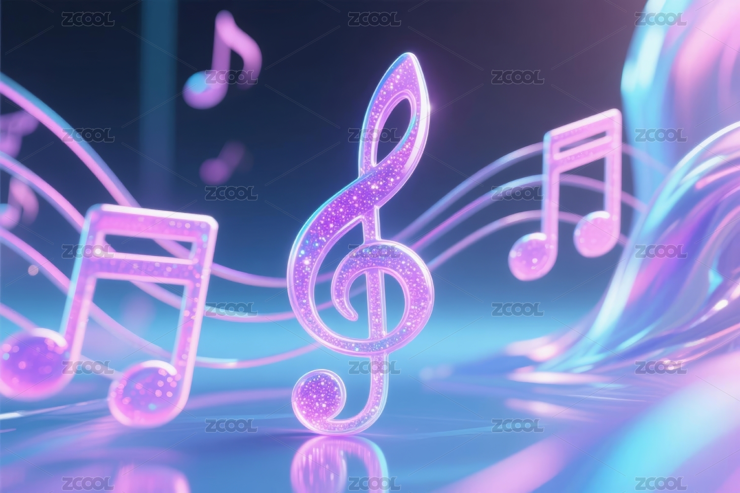 蓝紫色背景下科技感音乐符号与音符