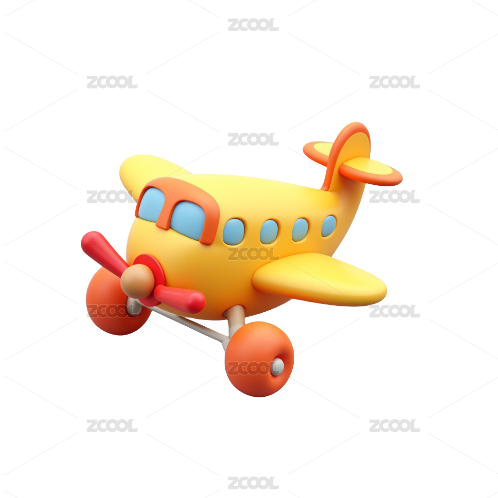 卡通飞机模型3D渲染,儿童节快乐童年玩具