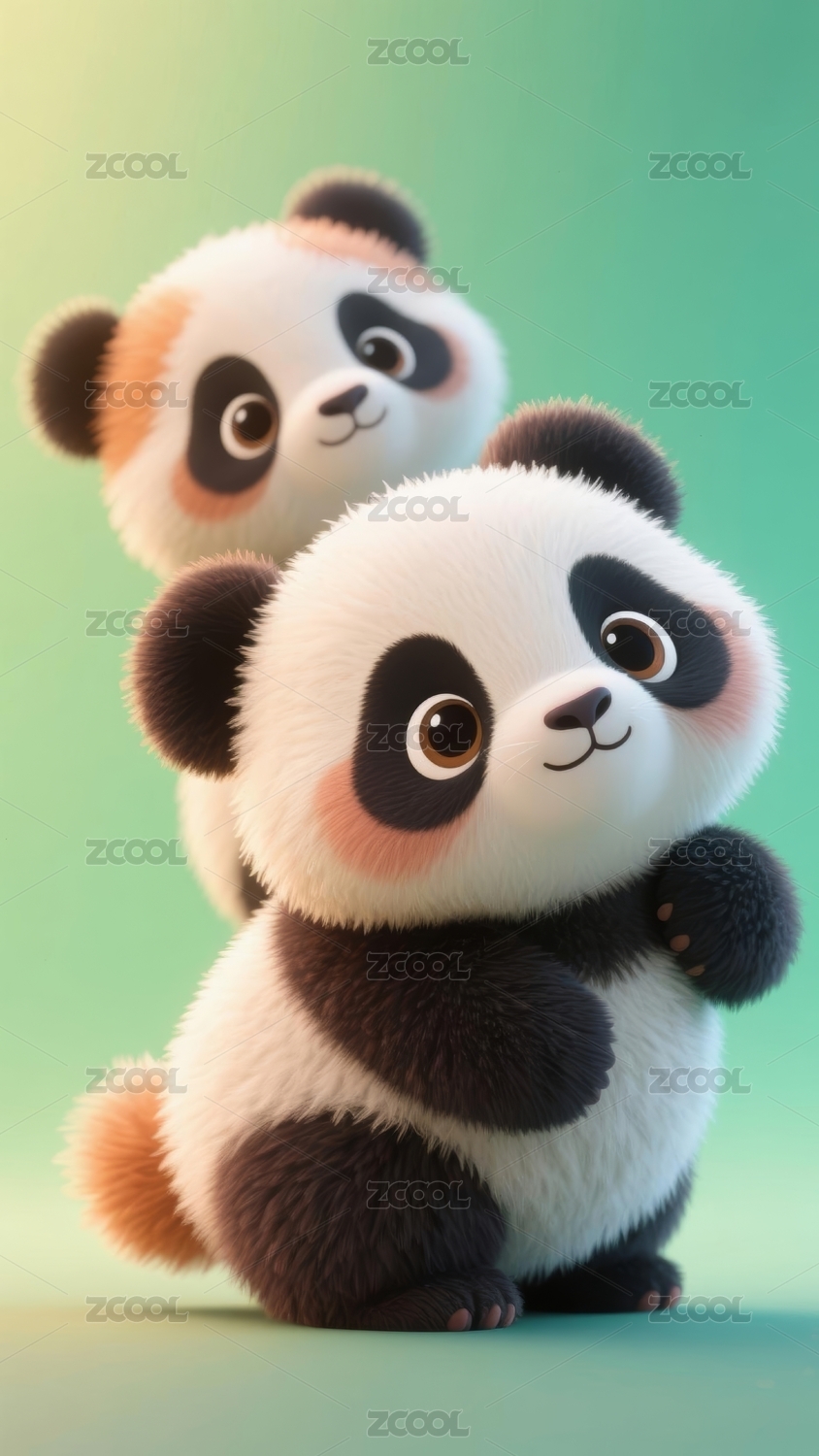 大熊猫可爱唯美野生动物3D卡通插画壁纸