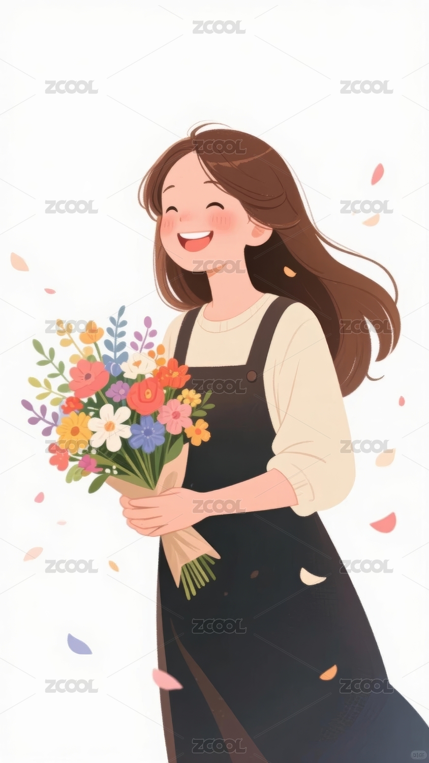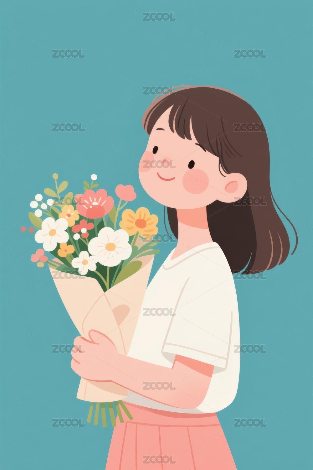 母亲节女孩抱着鲜花感恩节概念插图母亲节女
