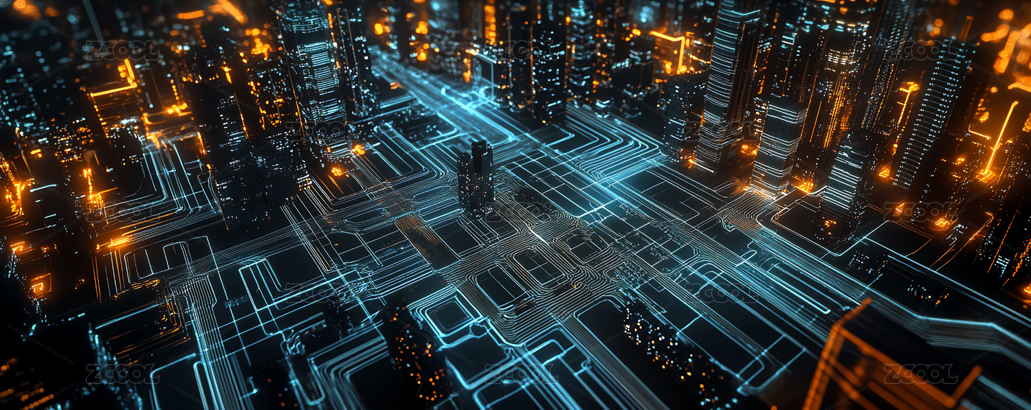 电路板,网络,背景,商务,渐变,光影,城市,天际线,摩天大厦,插图