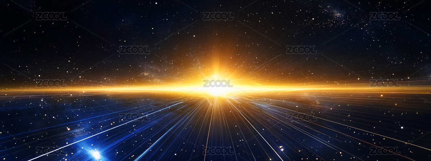 光束,轨迹,蓝金色,三维,场景,背景,地平线,光轨,空间,星空