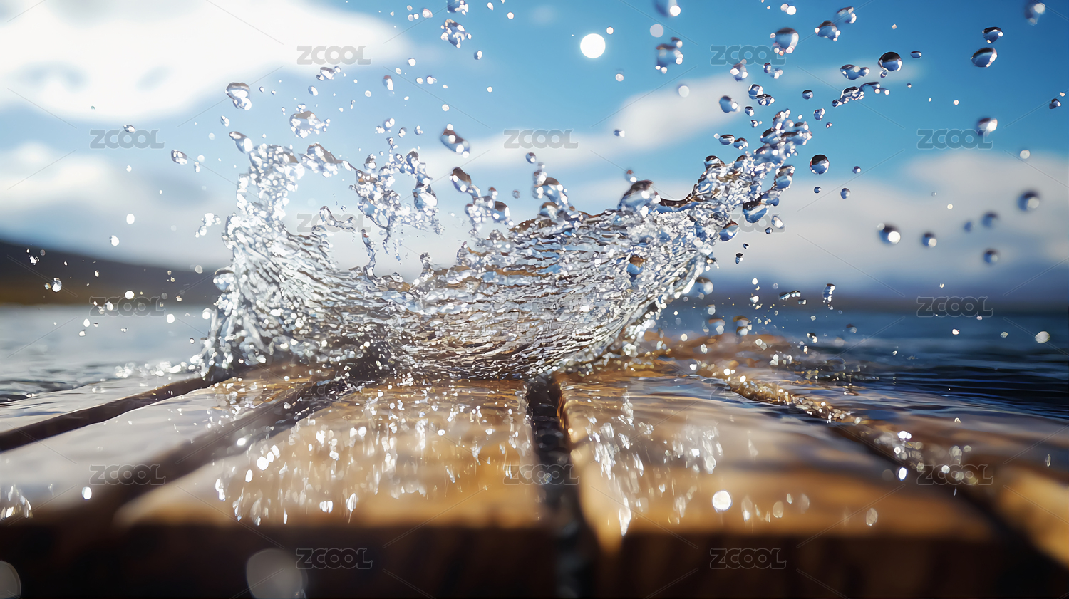 水花,飞溅,静物,特写,木头,平台,展示,空间,展台,浪花