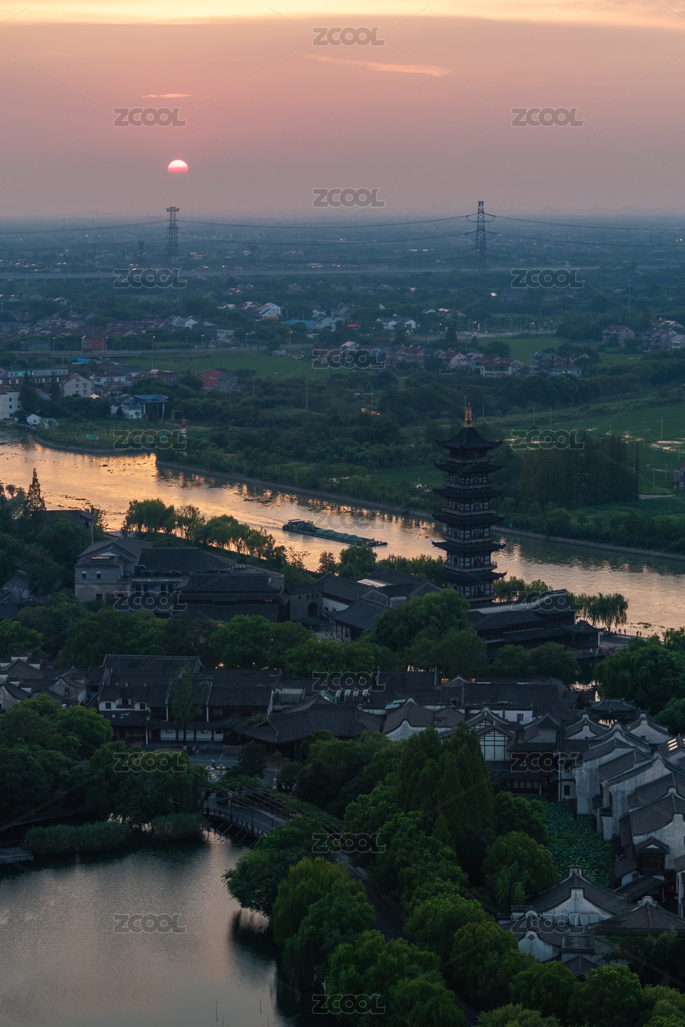 浙江宁波桐乡乌镇西栅古镇江南水乡航拍