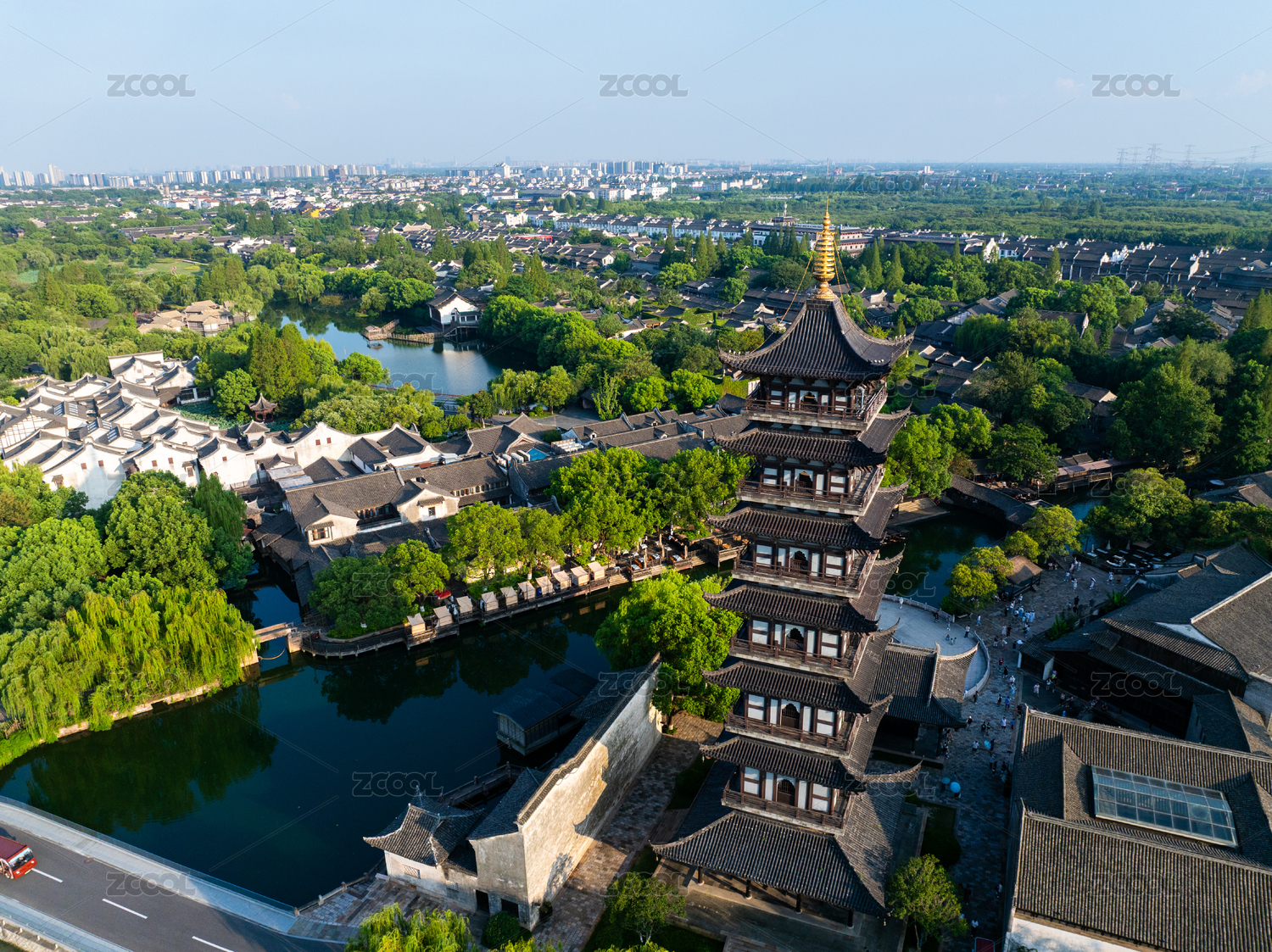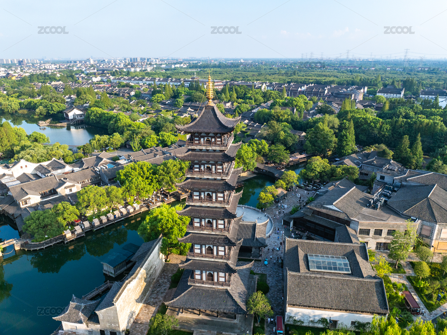 浙江宁波桐乡乌镇西栅古镇江南水乡航拍