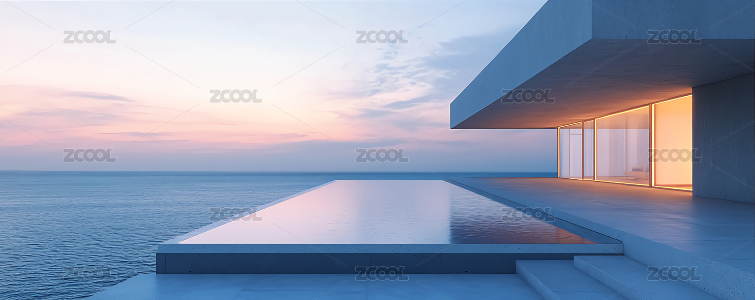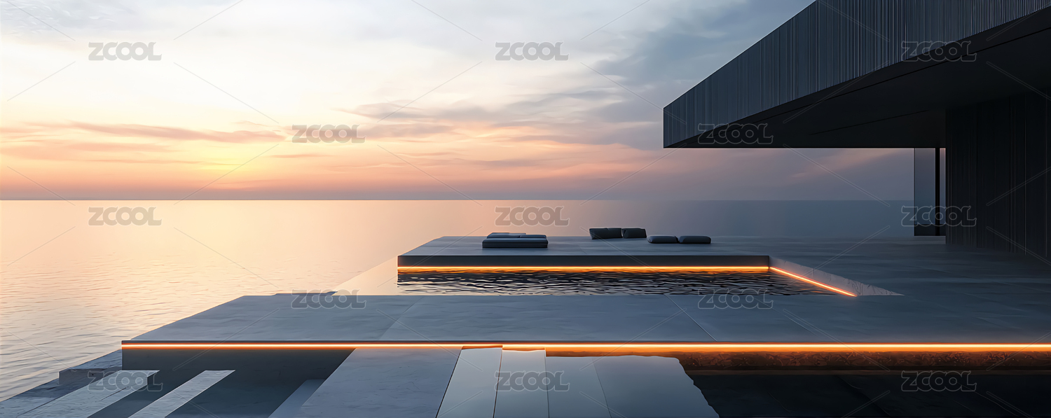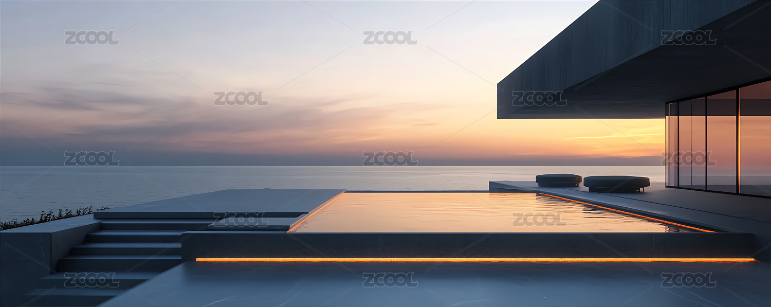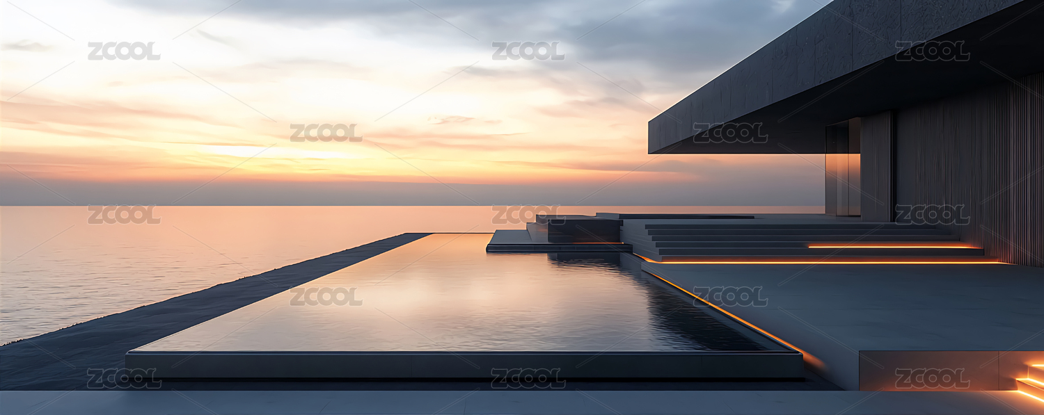 现代,极简,建筑,平台,展示,空间,城市,天际线,摩天大厦,背景