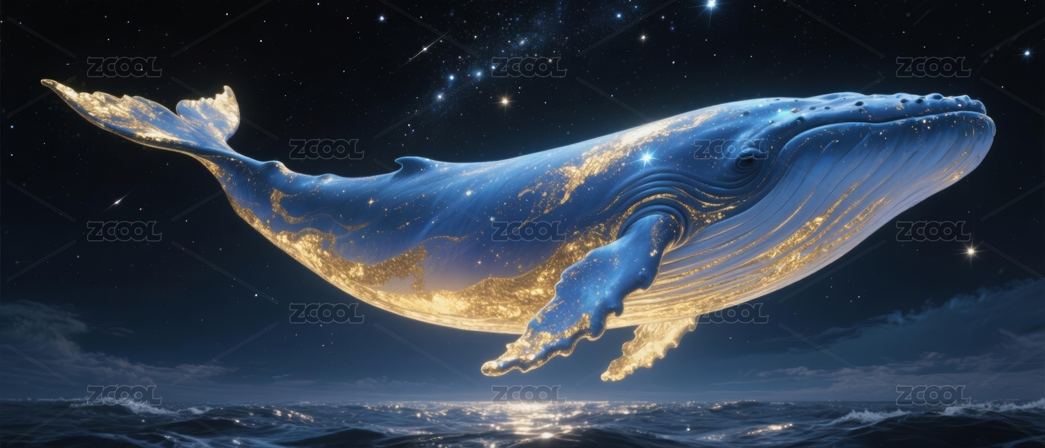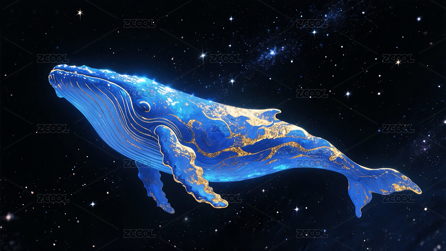 奇幻,鲸鱼,蓝鲸,鲲鹏,蓝色,背景,天空,飞舞,漂浮,科技