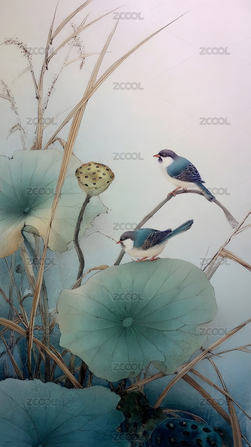 插画,国风,中国风,背景,复古,传统,中式,东方,古典,鸟