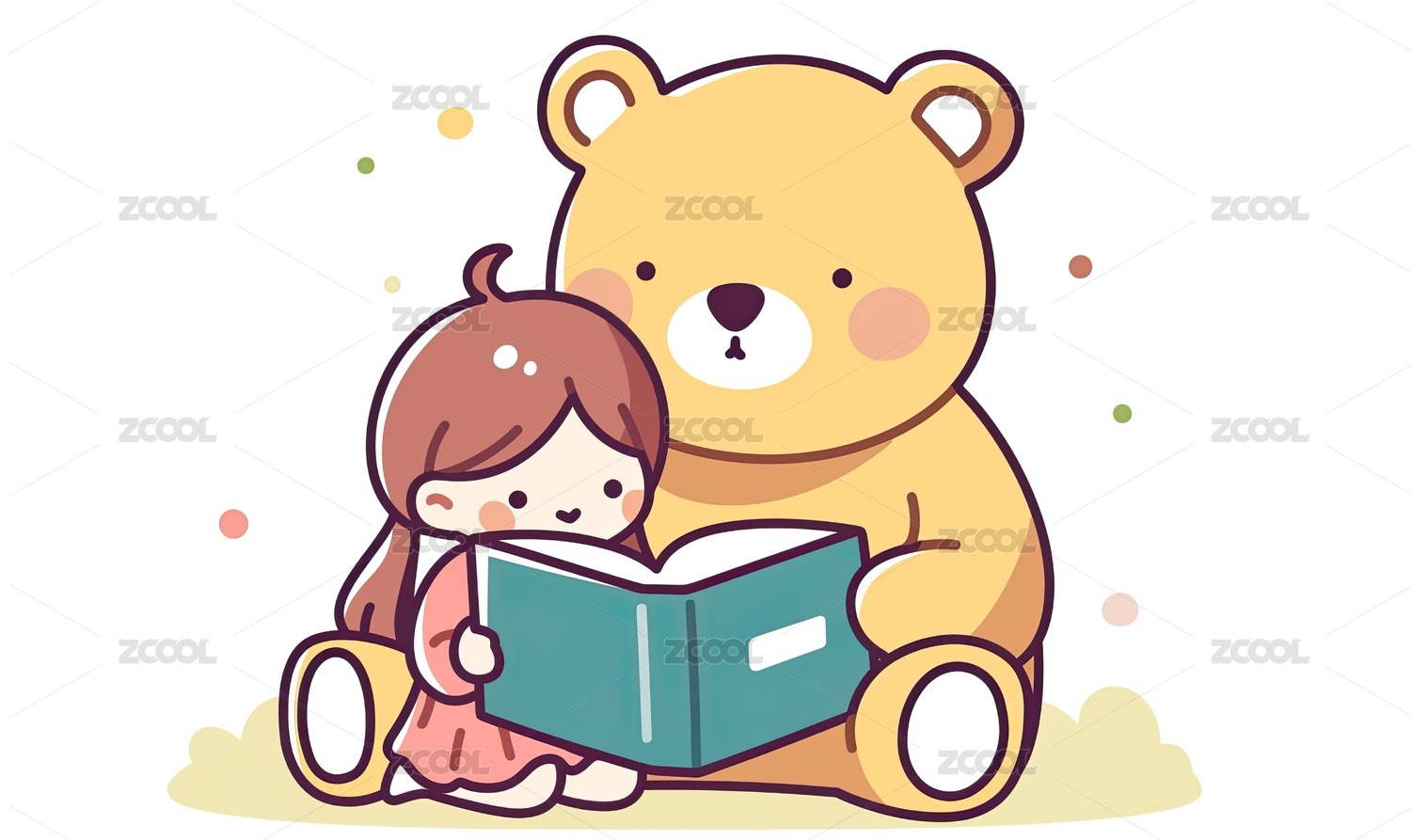 卡通,白熊,读书,可爱,插画,学习,萌趣,绘本,元素,教育