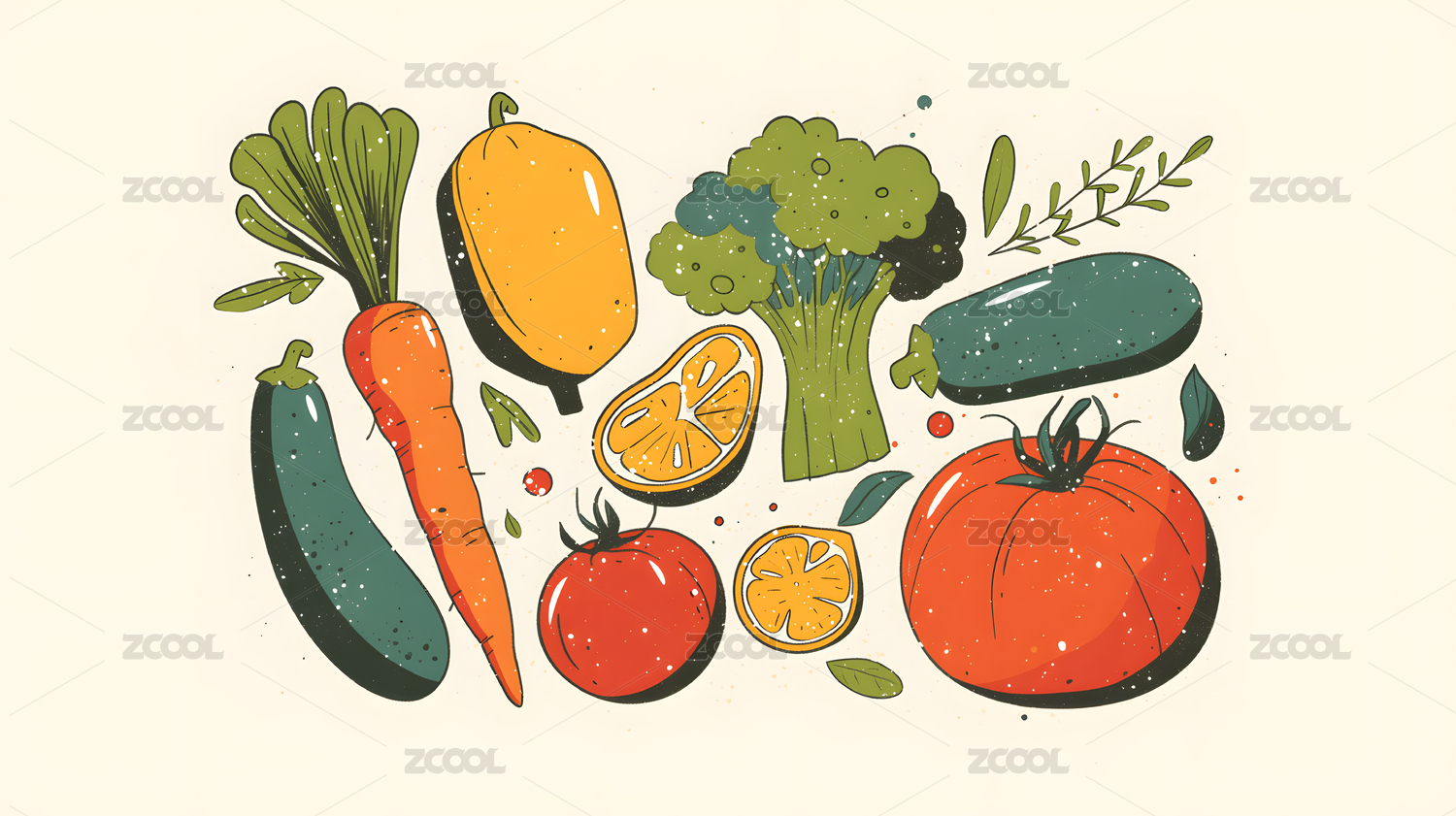 日漫风格 胡萝卜西兰花大蒜番茄辣椒茄子